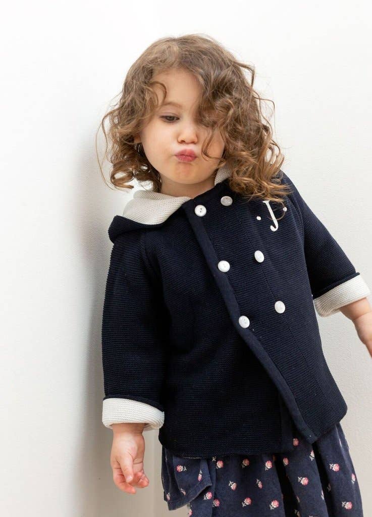 A vintage classic in modern times. The sweetest little double breasted sweater jacket. Perfectly classic for the sweetest little boy or girl.