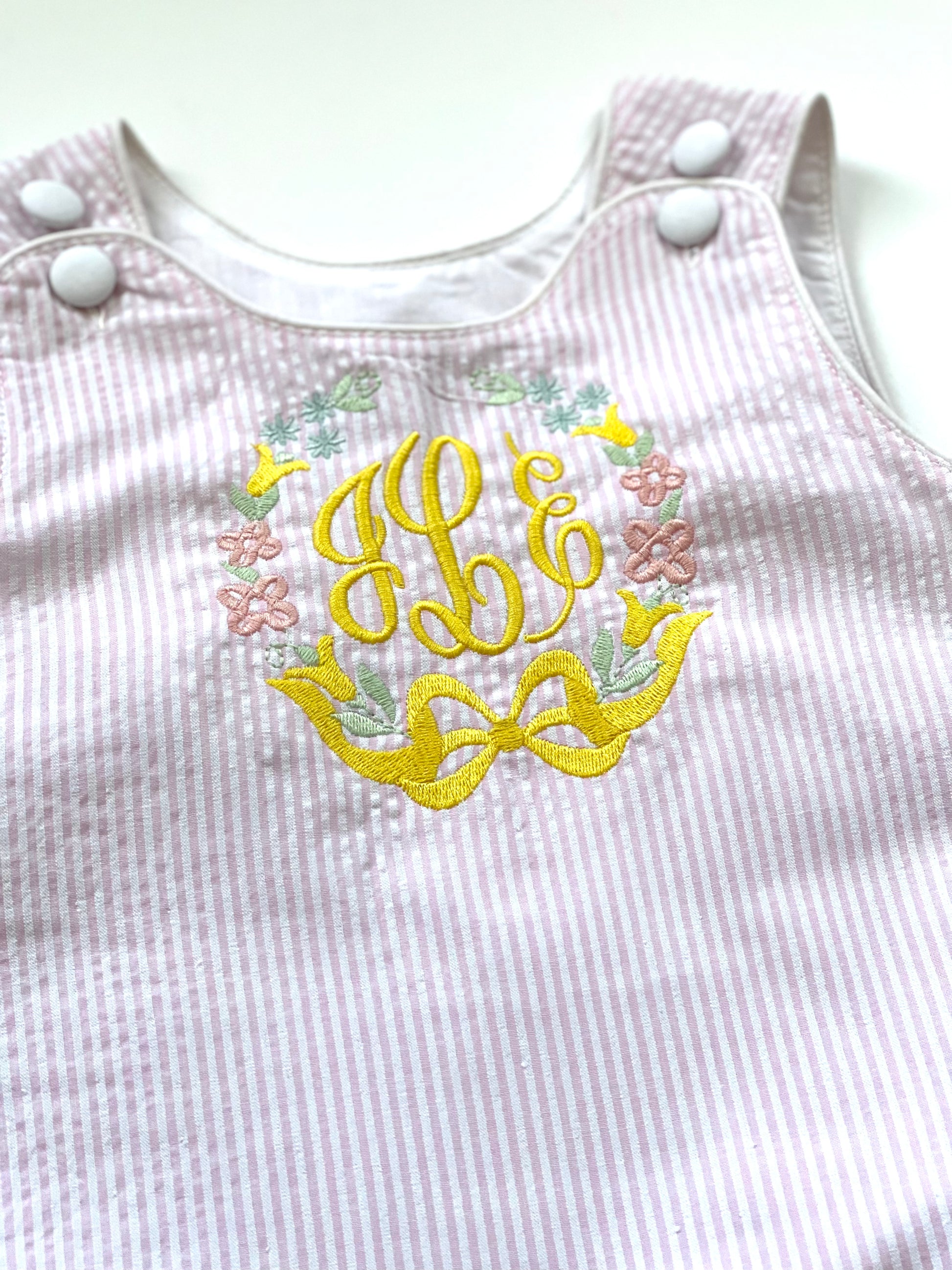 Go simple with the mini golf motif and name on the left pocket or go big with a wreath design and monogram in the center chest. All colors can be customized! Please be very specific in your comments or simply say "love navy and reds" or "keep it girly" and we will happily design appropriately!