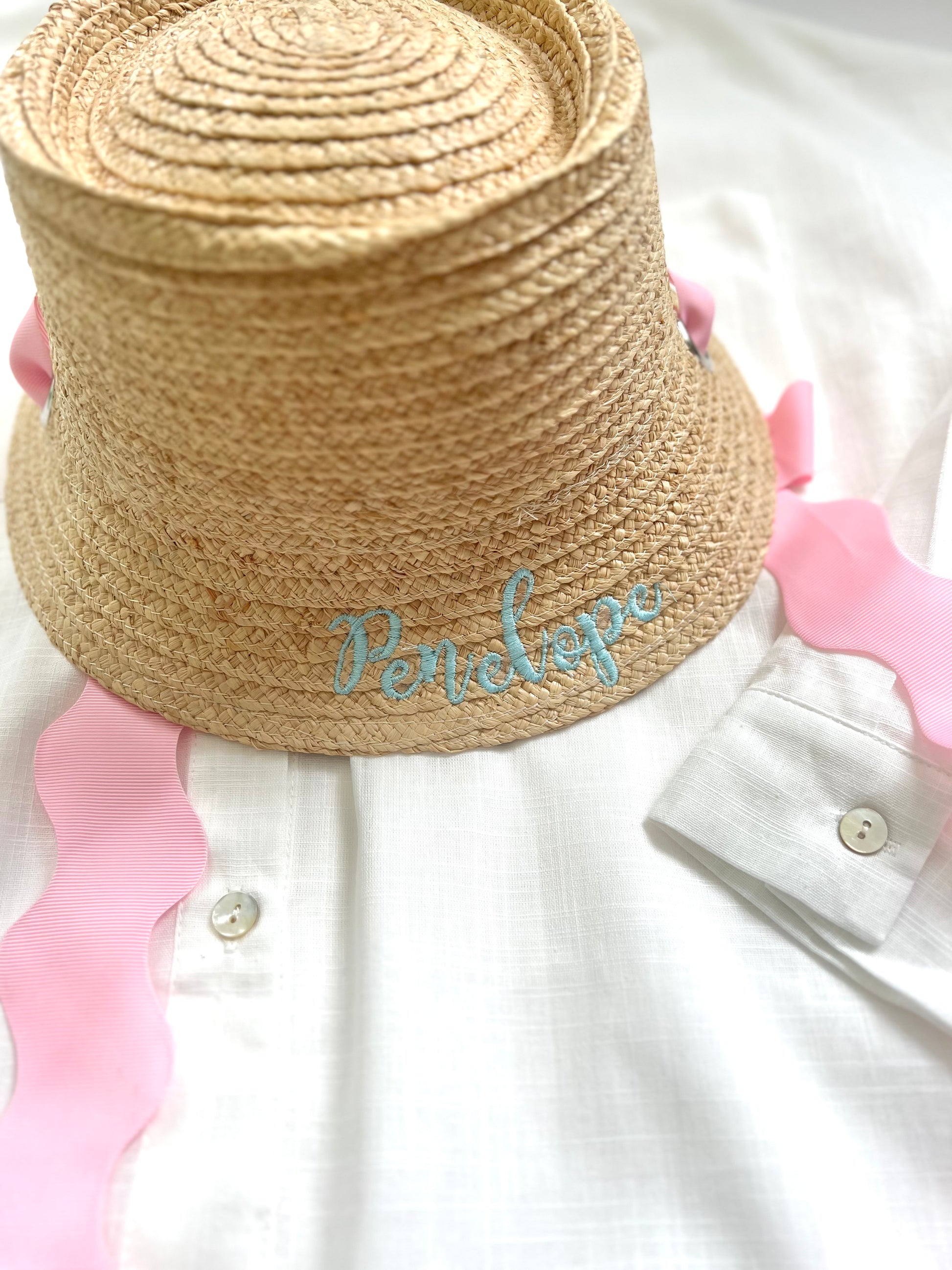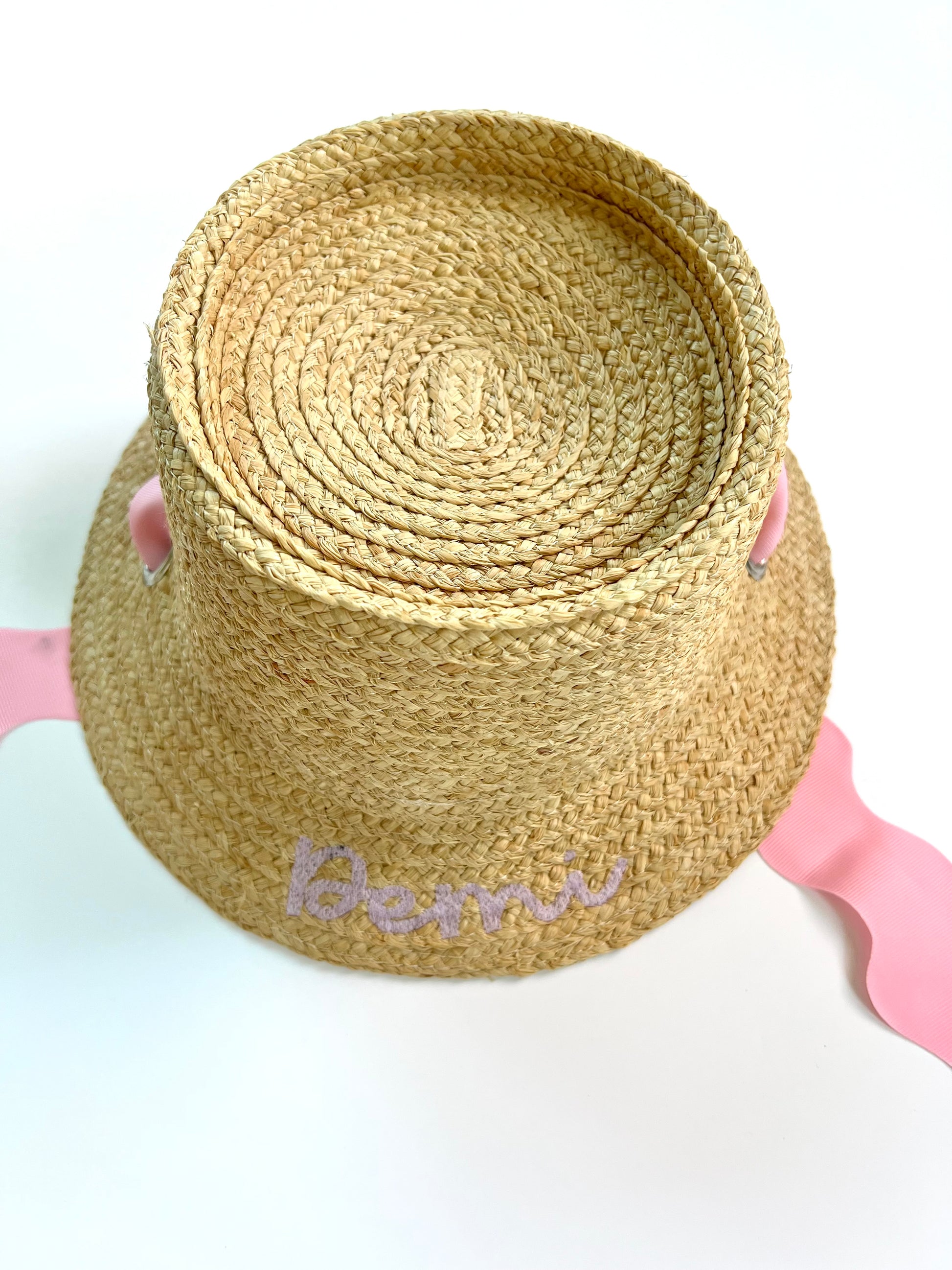 High quality natural palm with beautiful scalloped ribbon make this a spring and summetime must-have for girls. Adjustable strings make this a great fit for most girls ages 3-12.