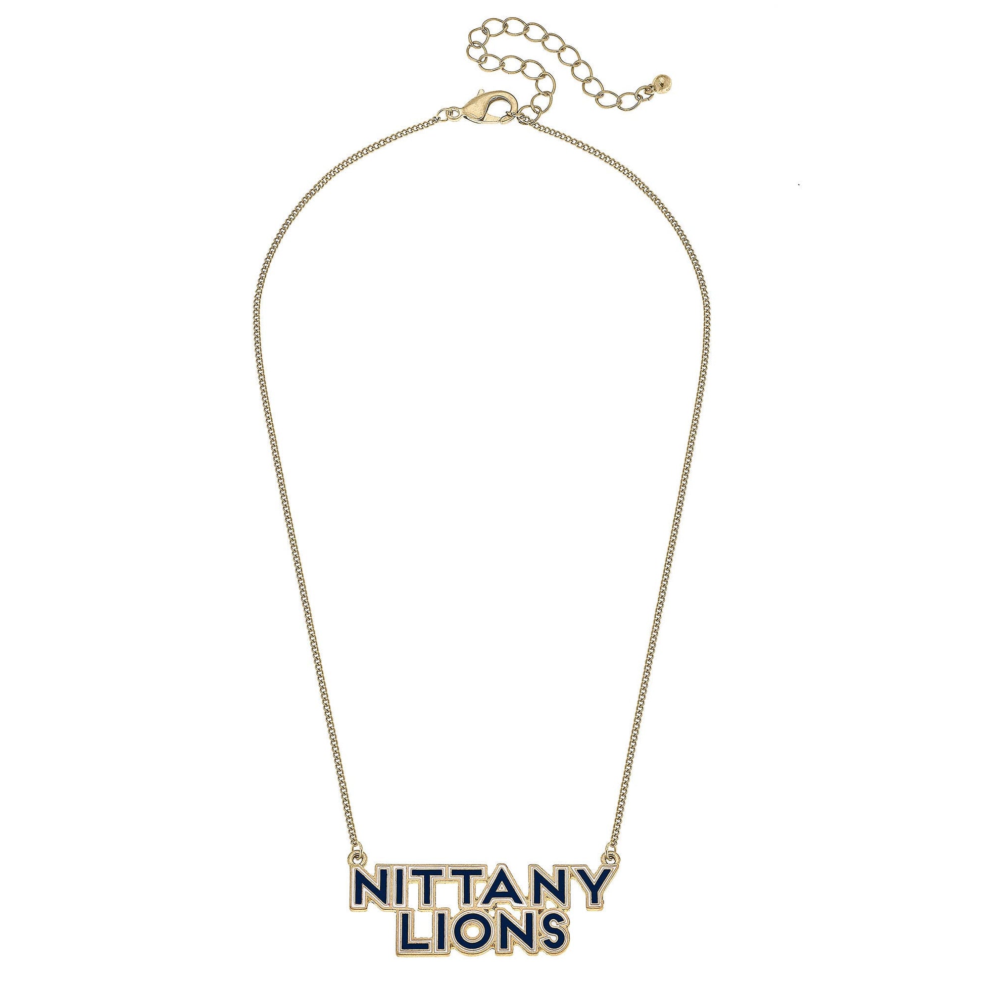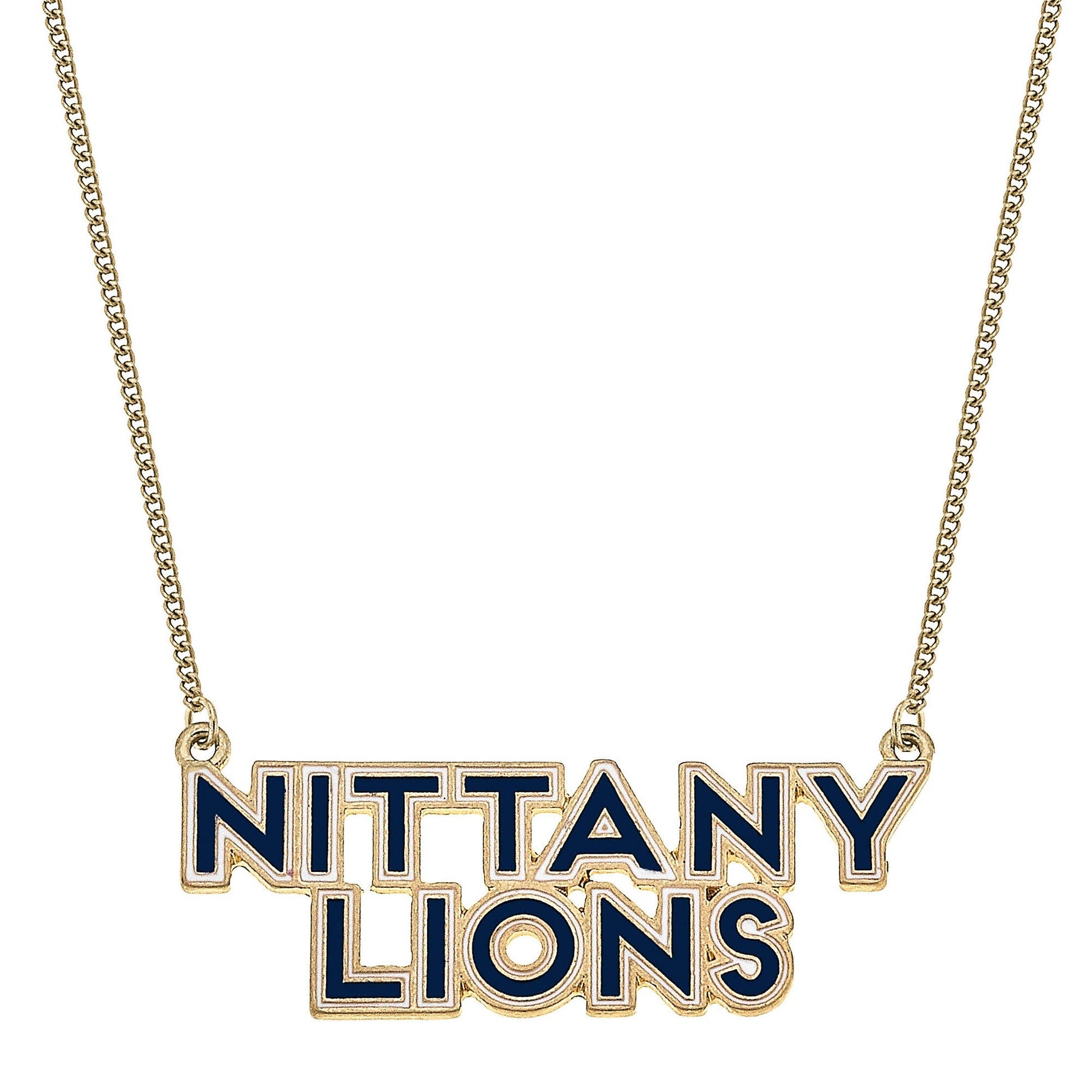 Show your team spirit with this fun Penn State Nittany Lions Outline Enamel Necklace in Navy/White! Perfect for game day or any day, the "Nittany Lions" design adds a playful touch to your outfit. Represent your team in style!