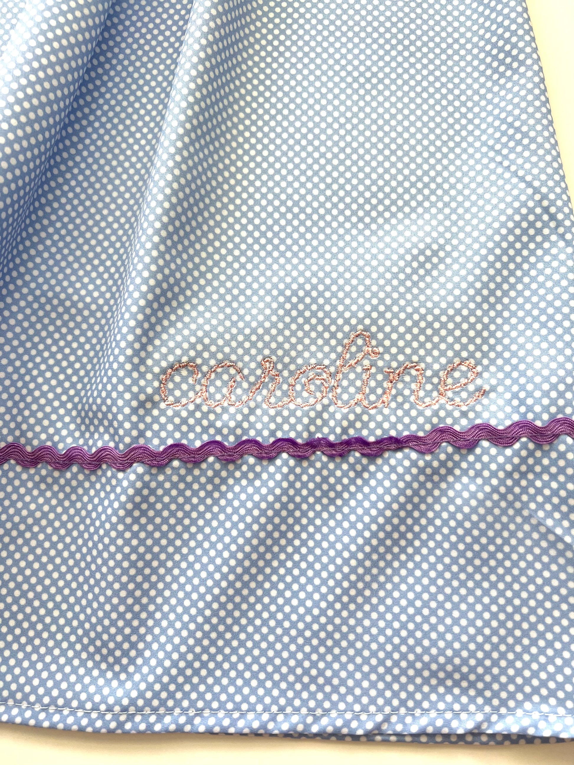 Name or monogram can be added at bottom of hem. If you would like the dress without a name/monogram that is OK too!