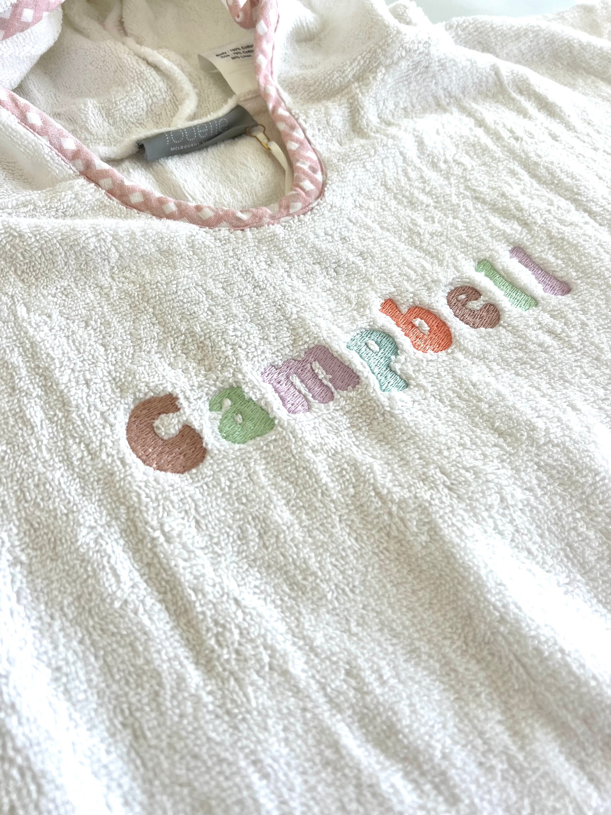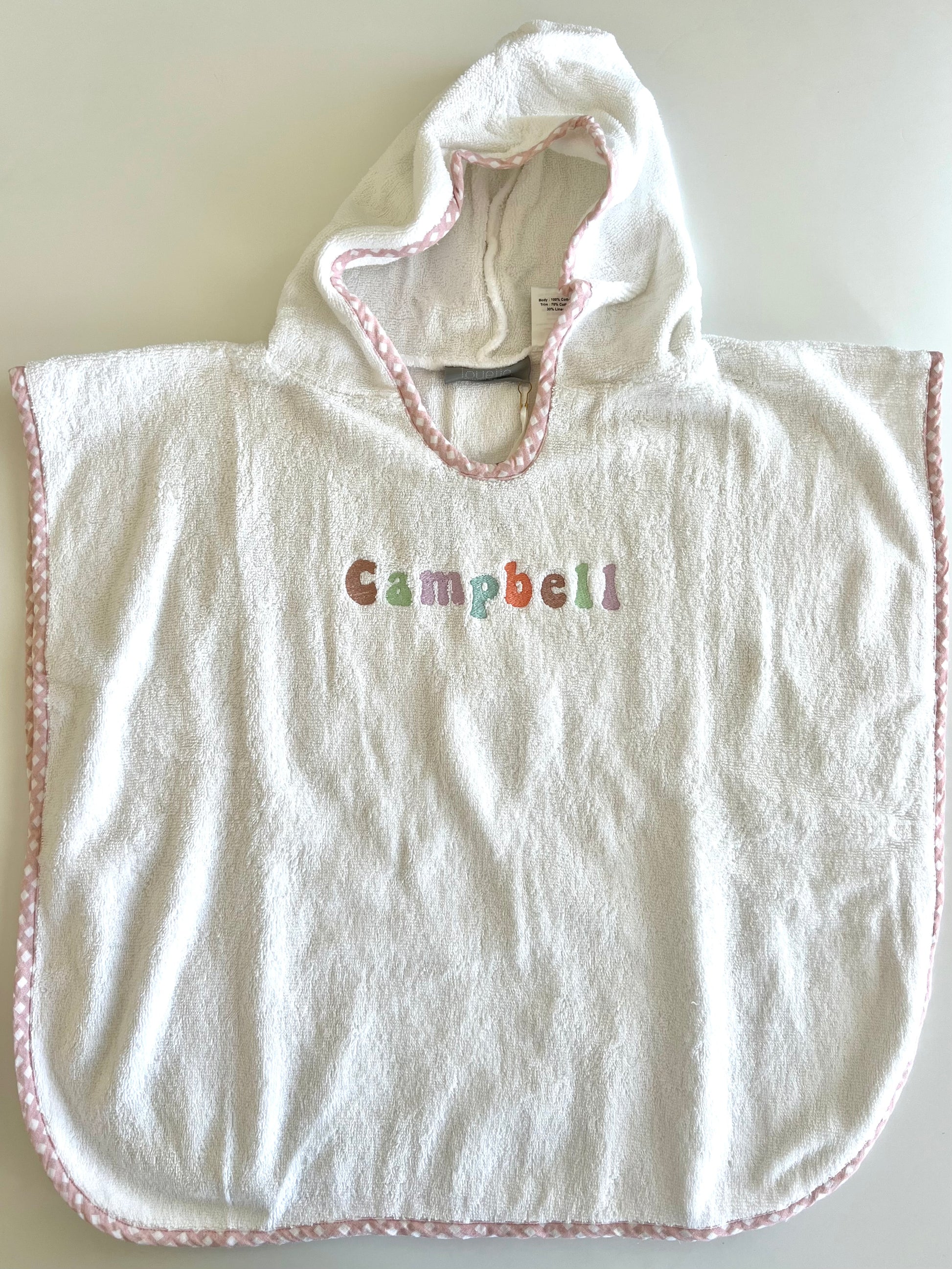 Take it to the beach, the pool or a cozy robe for after bath. Terry Poncho is one size and is recommended for 2- 6 years old.