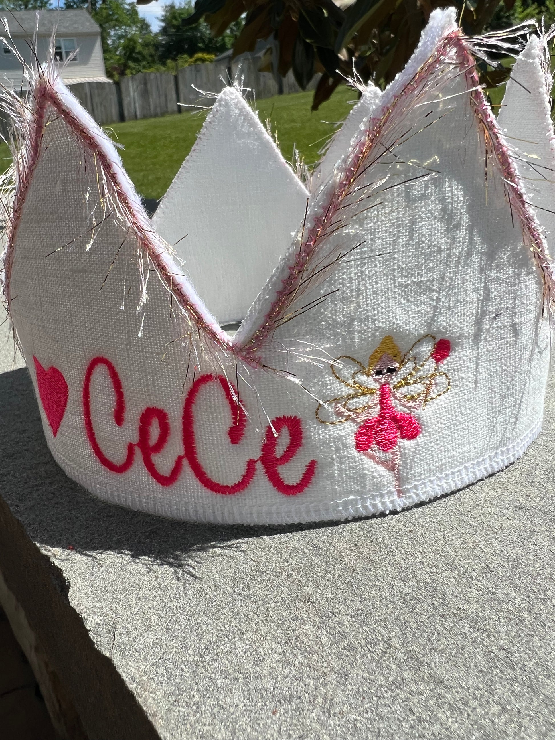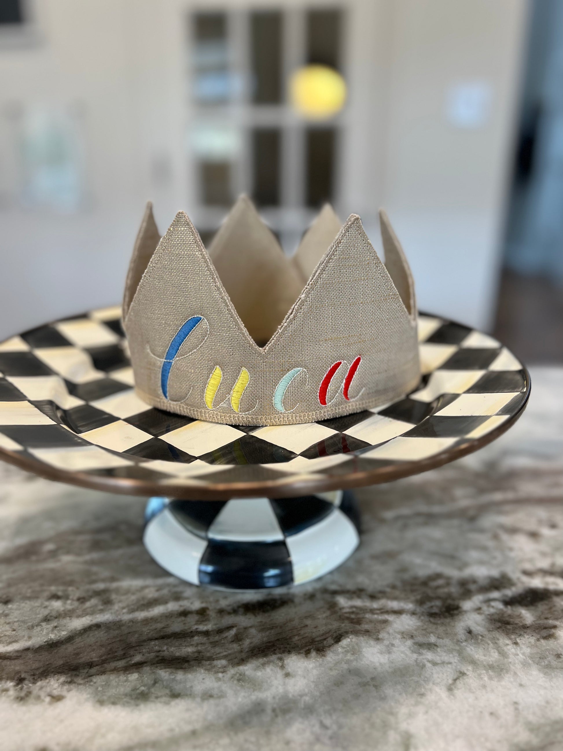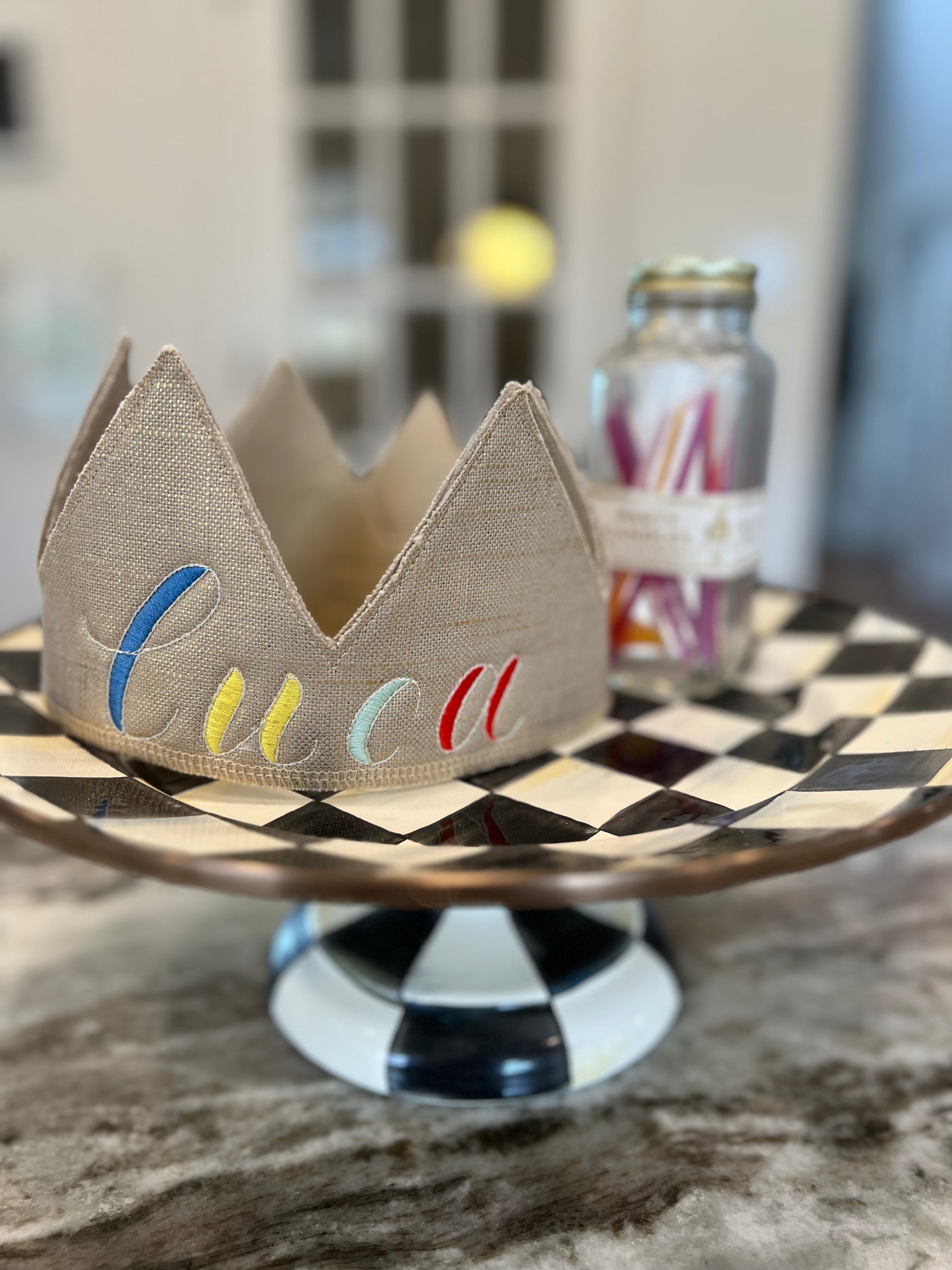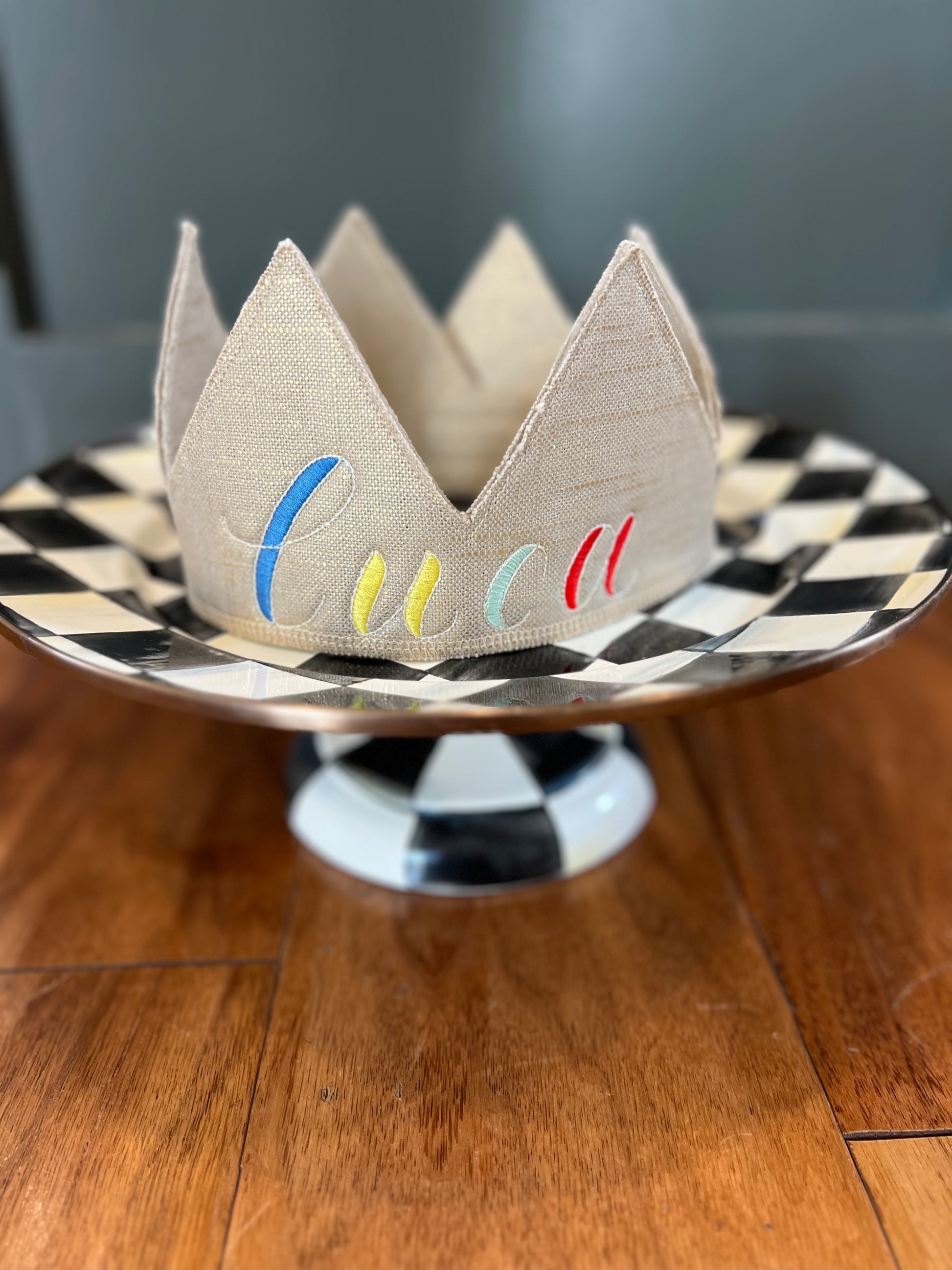 Get ready for the party! or party for no reason with this custom keepsake linen crown. One size only, with an adjustable velcro back for a perfect fit.