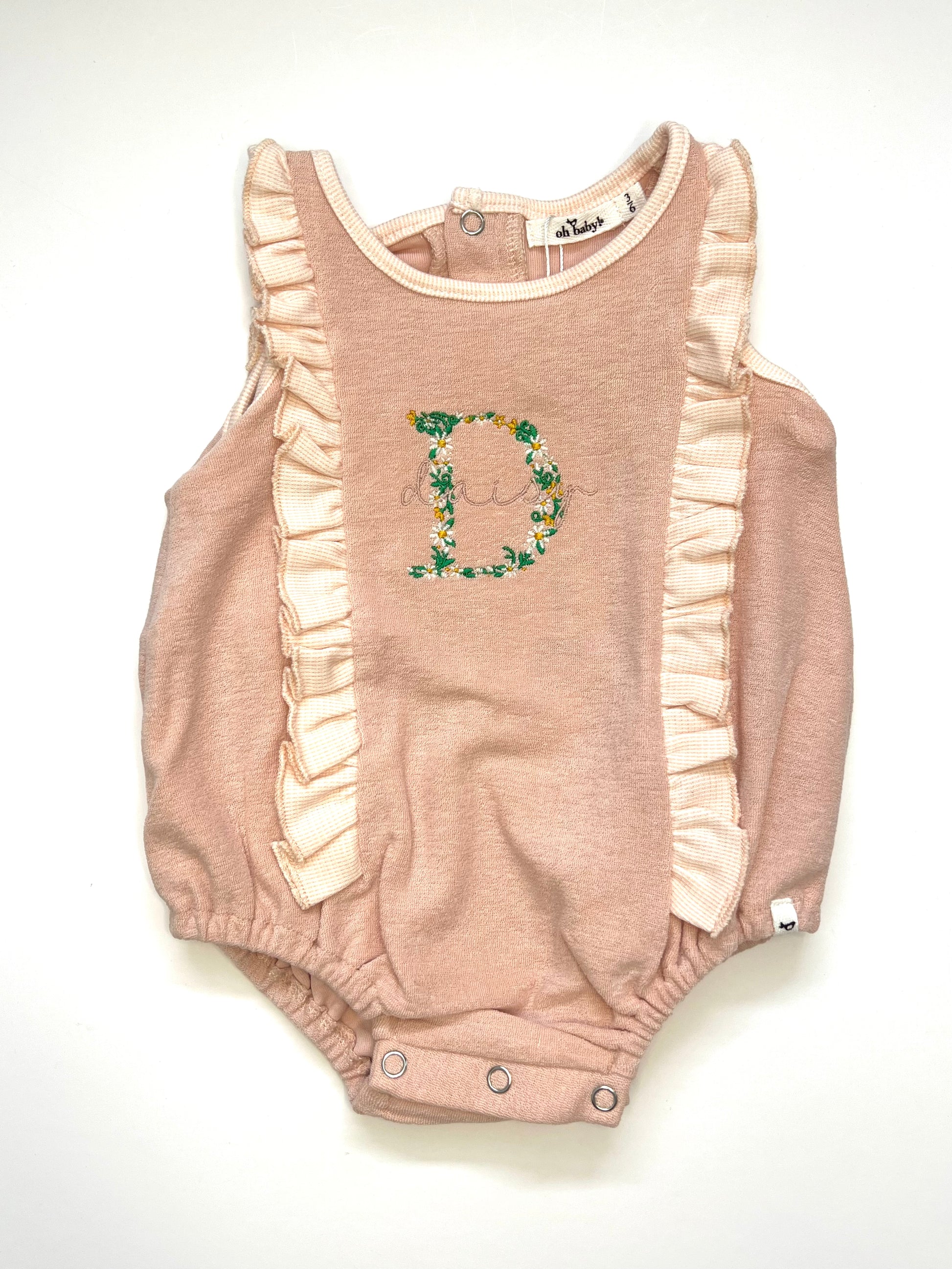 Babies in bubbles are EVERYTHING. Top this one off with a cherry with it's cool and soft terry cotton and ruffle features. Add a cute monogram to the center or her name along the collar. It is sure to be a workhorse in your daughter's wardrobe!
