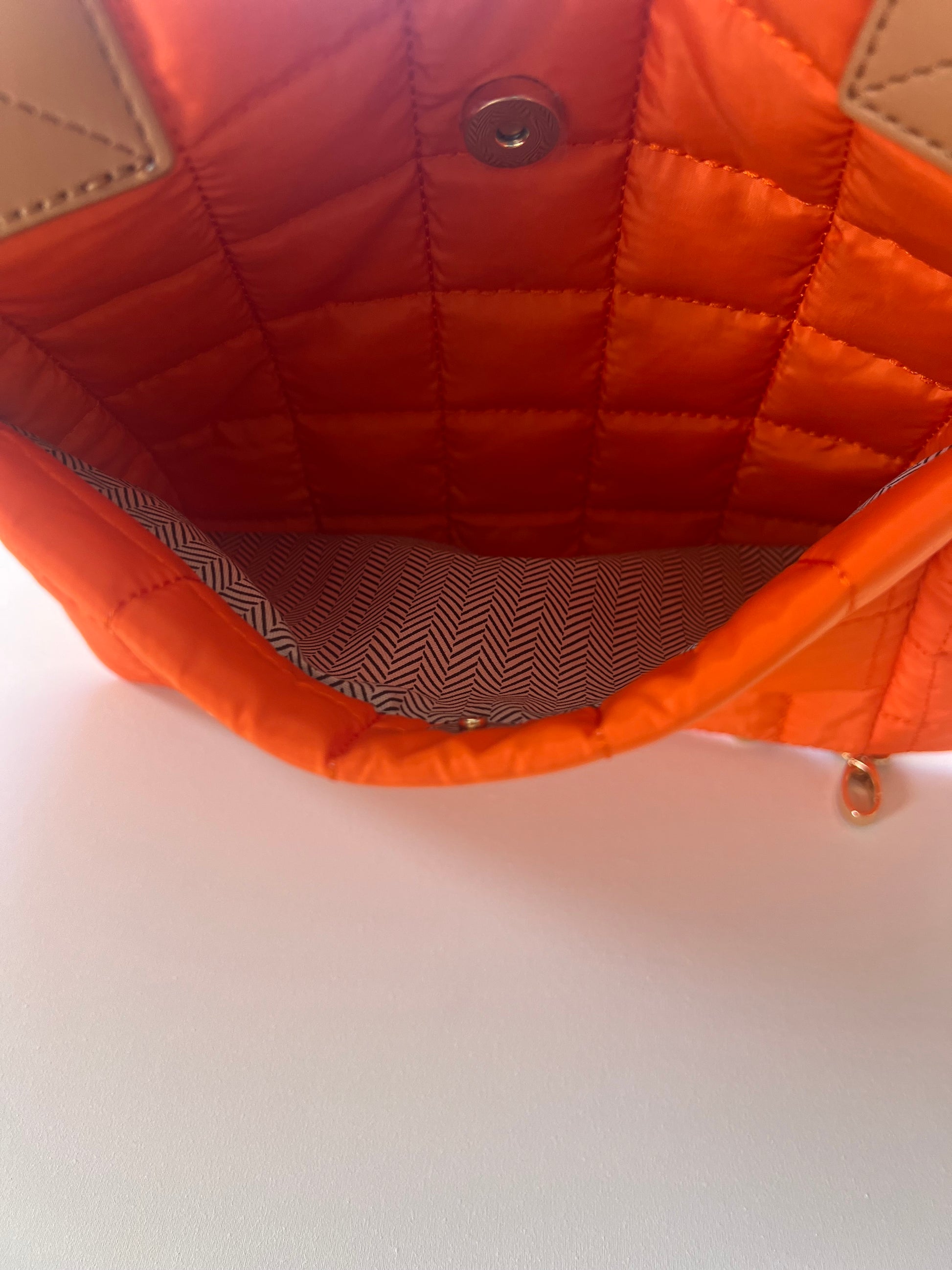 The Quilted Tote Bag is the bag you never knew you needed. Functional as an everyday and everything catch all, you will love the organization pockets and function of this tote. Our favorite part is the outside back pocket that converts to a trolly sleeve to make travel a breeze. The accented color straps add a pop of interest to your newest addition. Available in Orange, Blue, Hot Pink, Black or Tan