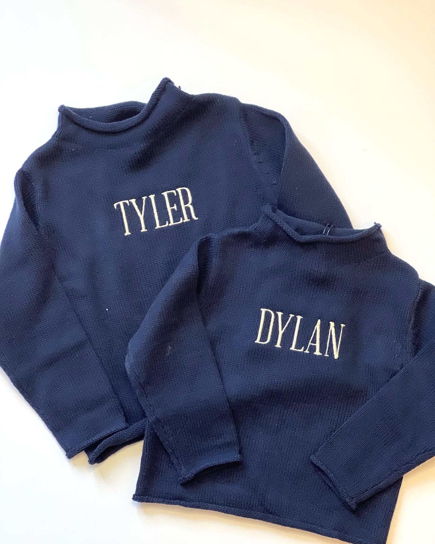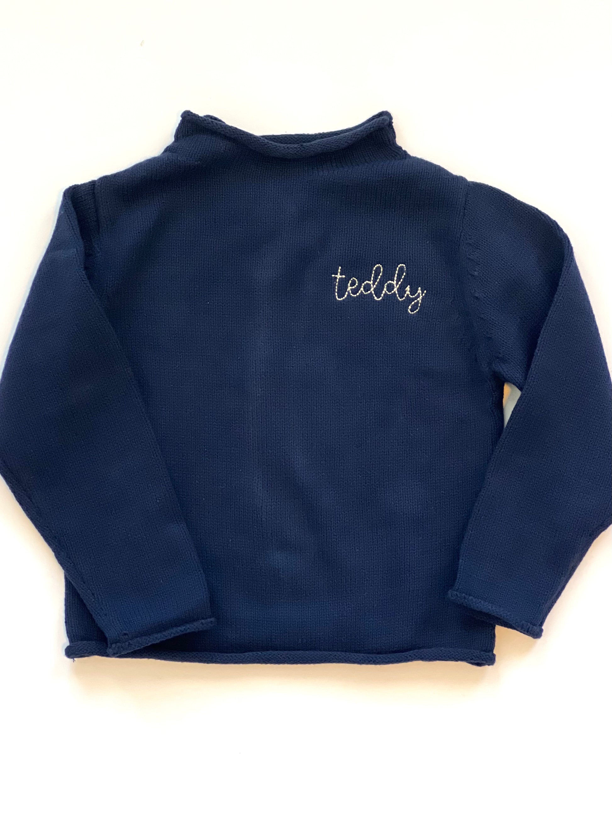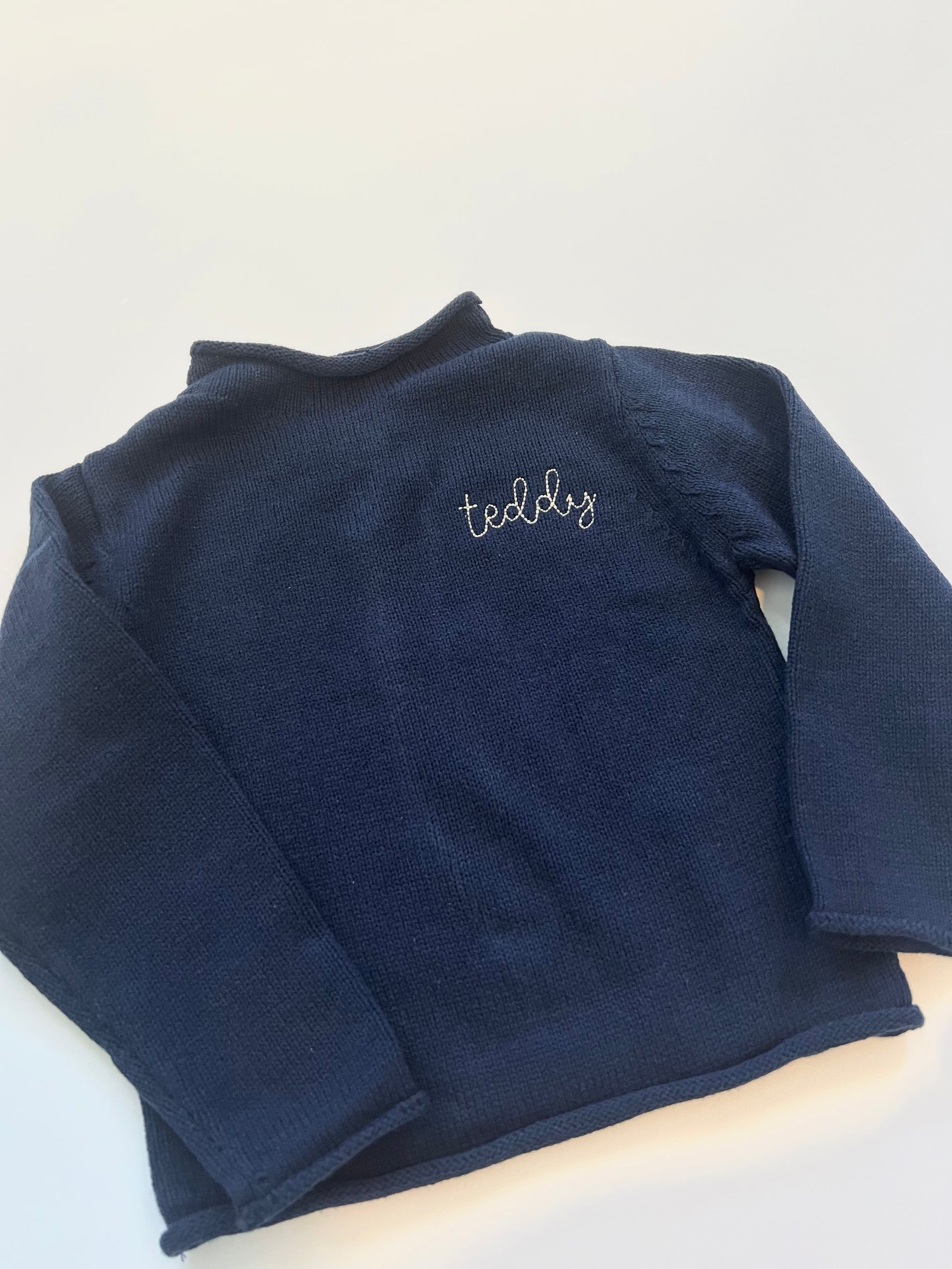 now available in navy. so sweet, simple and full of class. Roll Neck Sweater Rolled edge on sleeves and bottom edge Soft Cotton blend