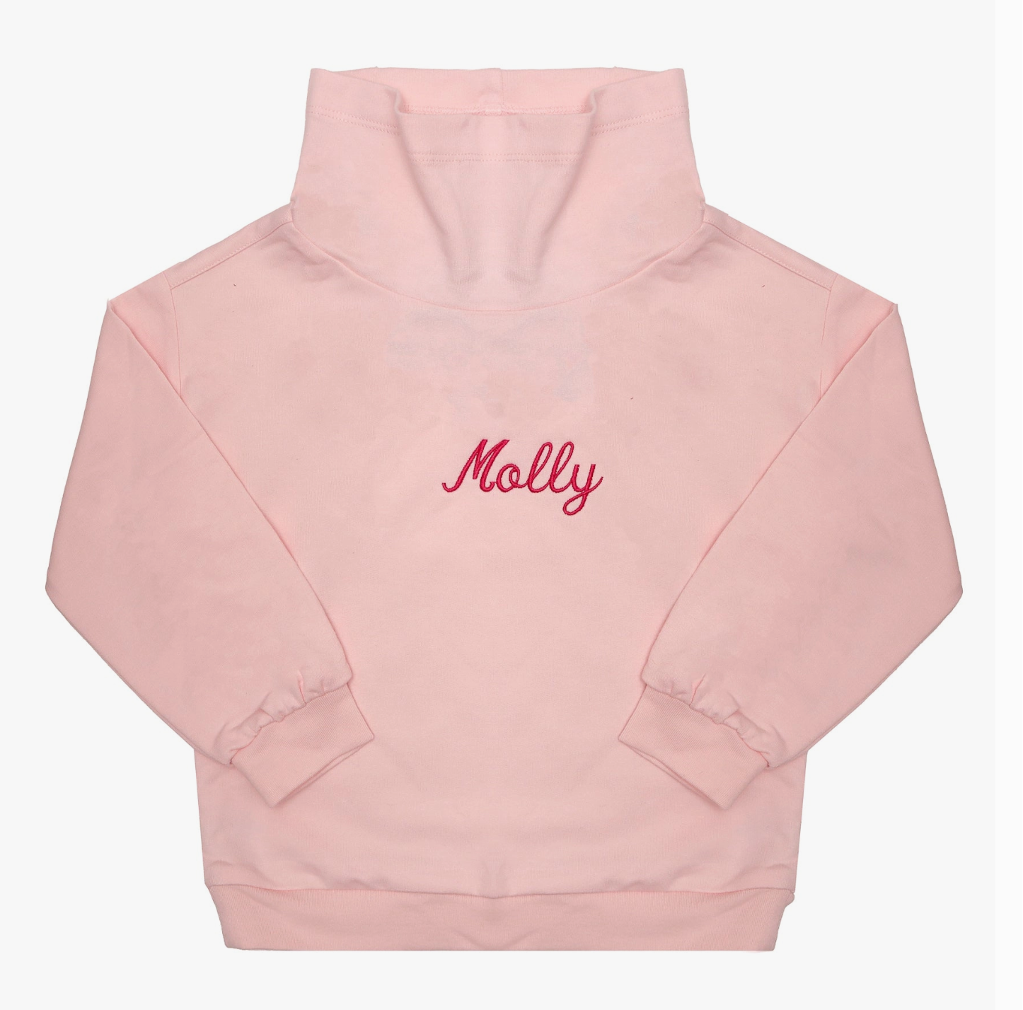 Upgrade your kiddo's closet with the most comfortable lightweight funnel neck sweatshirt. It is an easy fit in every girl's favorite color. Add her name in rainbow and it is sure to make mom and daughter happy.