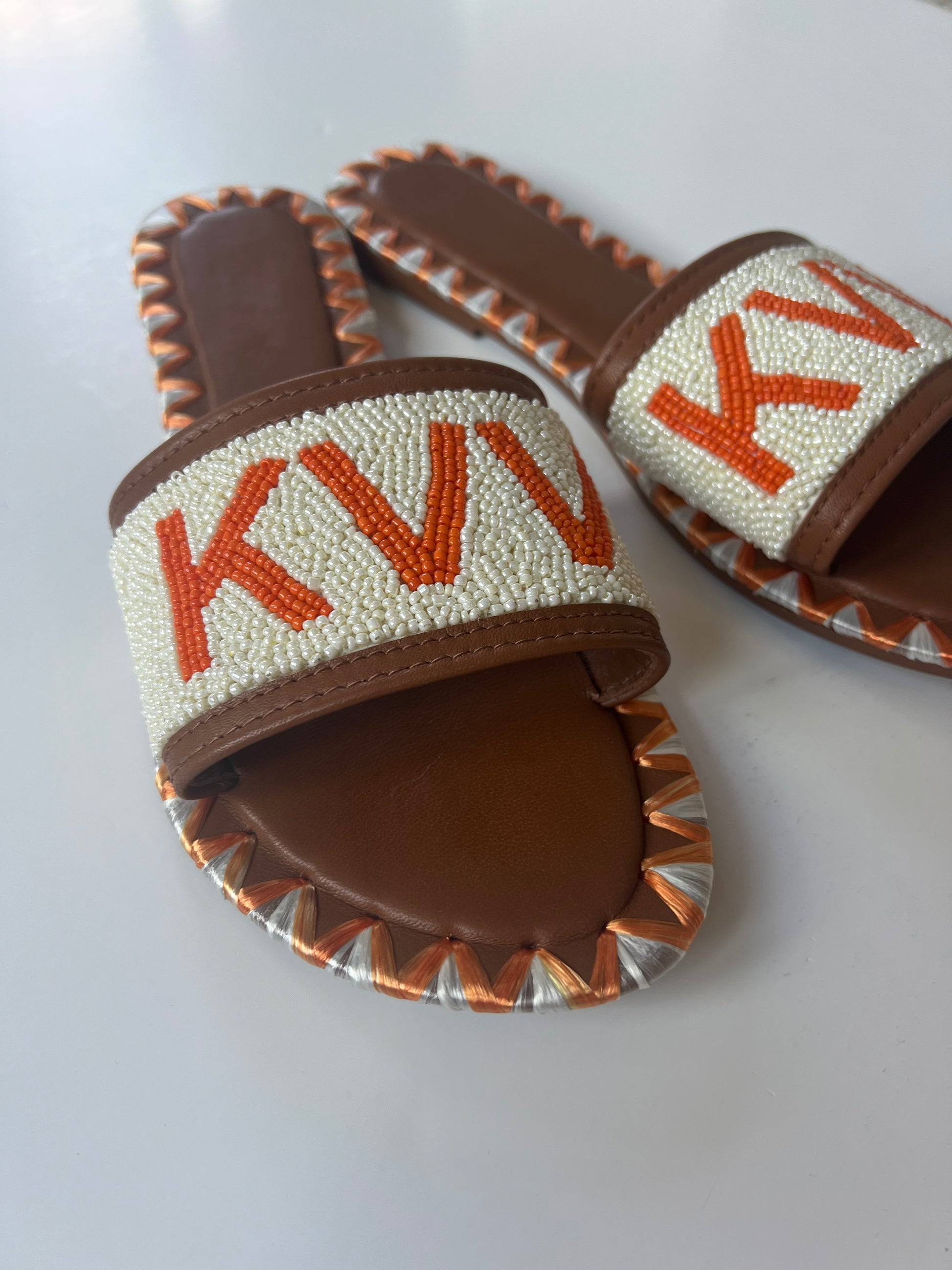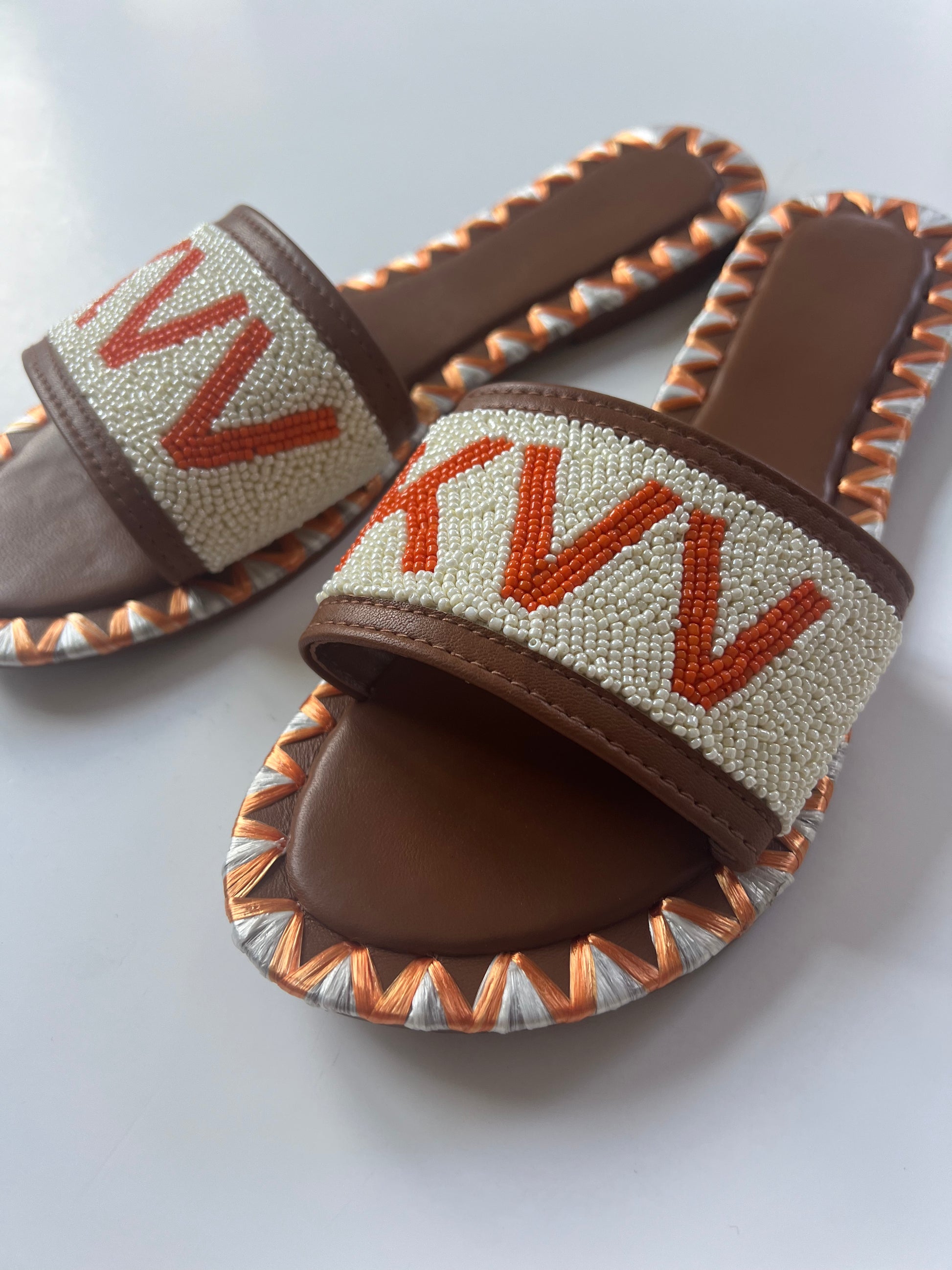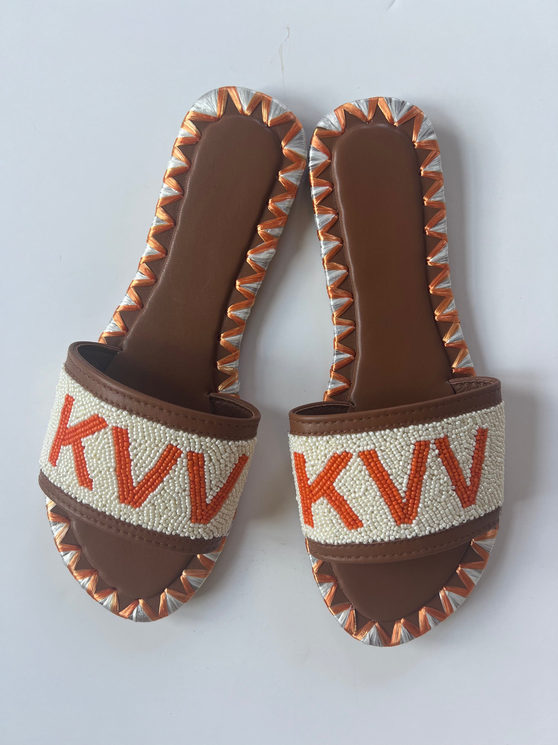 Fully Beaded slip on style sandal with a leather lining. This product is 100% handmade and hand-beaded.