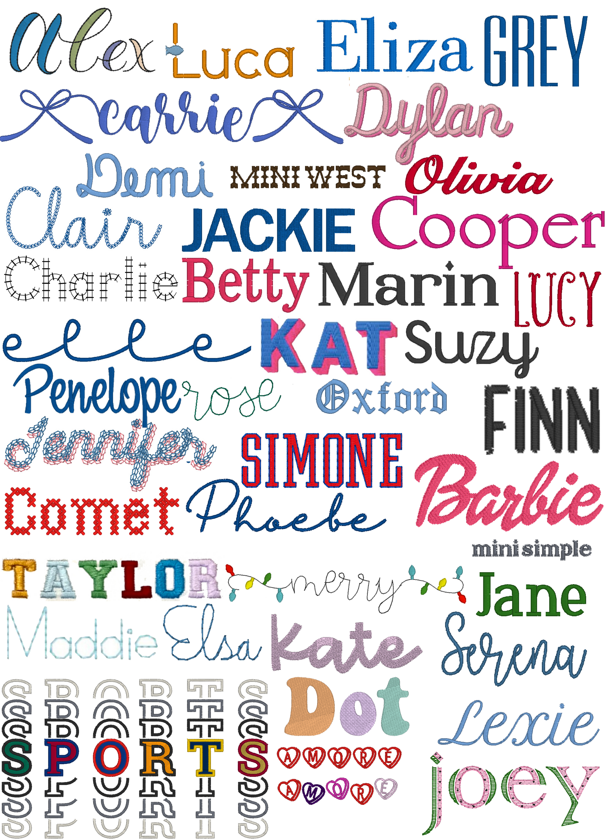 **Recommended fonts/monogram styles: kate, kat, jackie, eliza, green, circular scallop