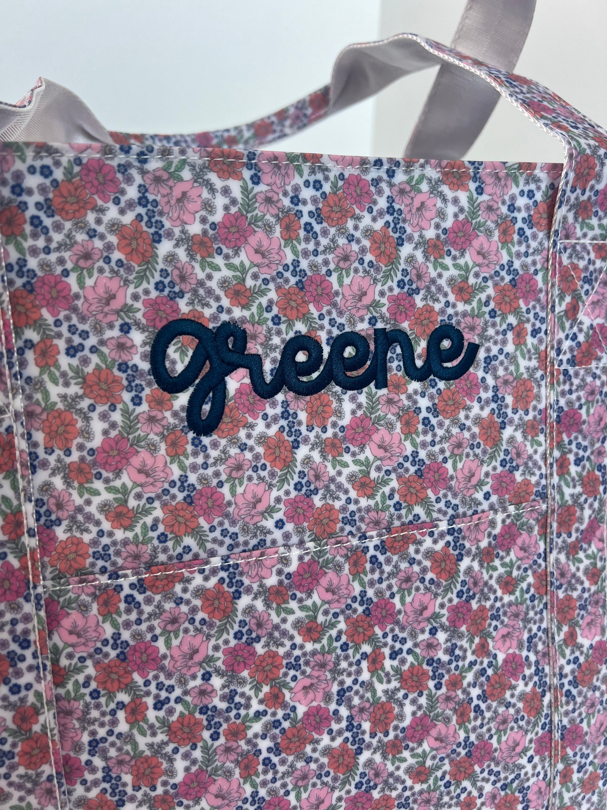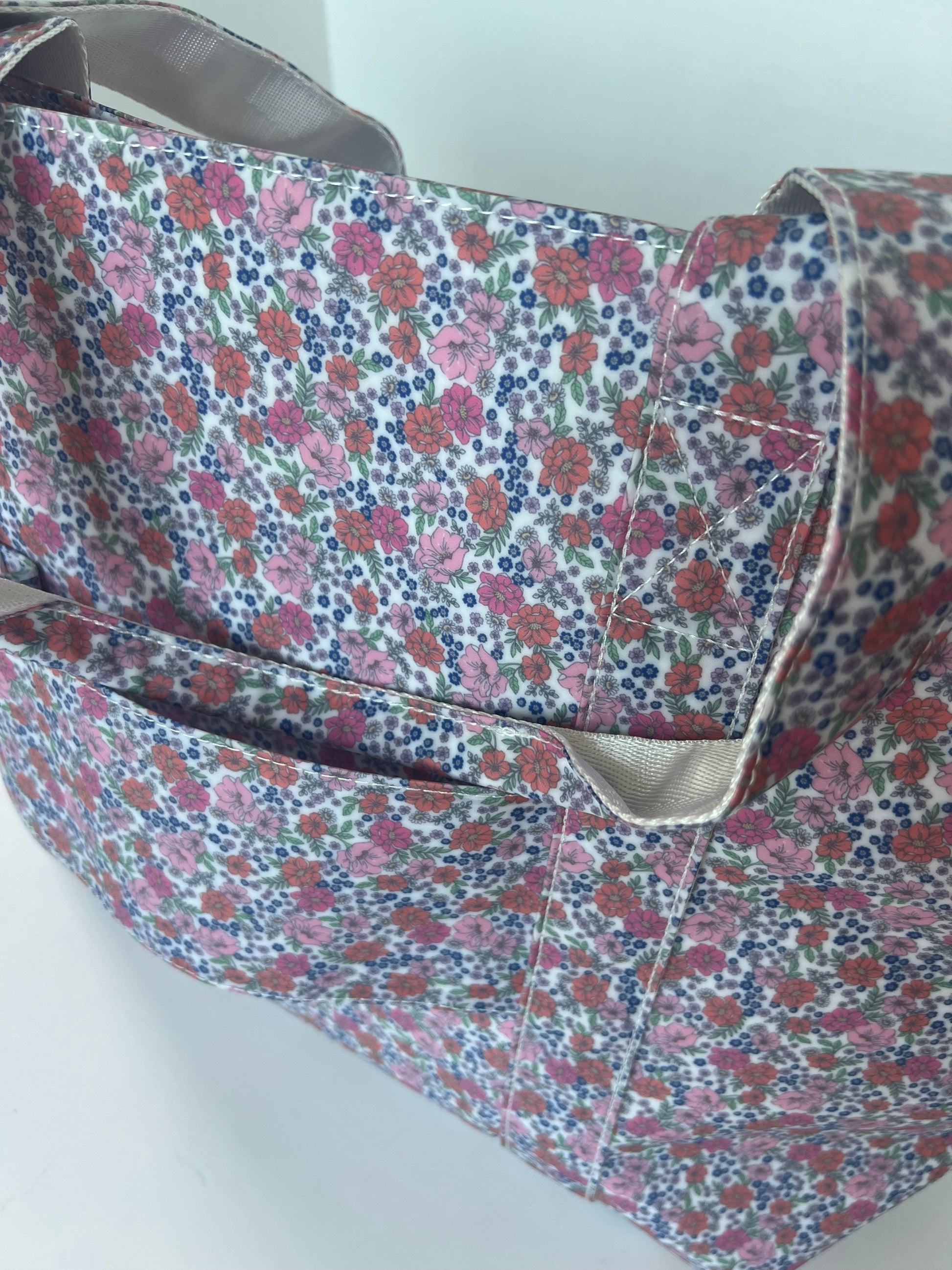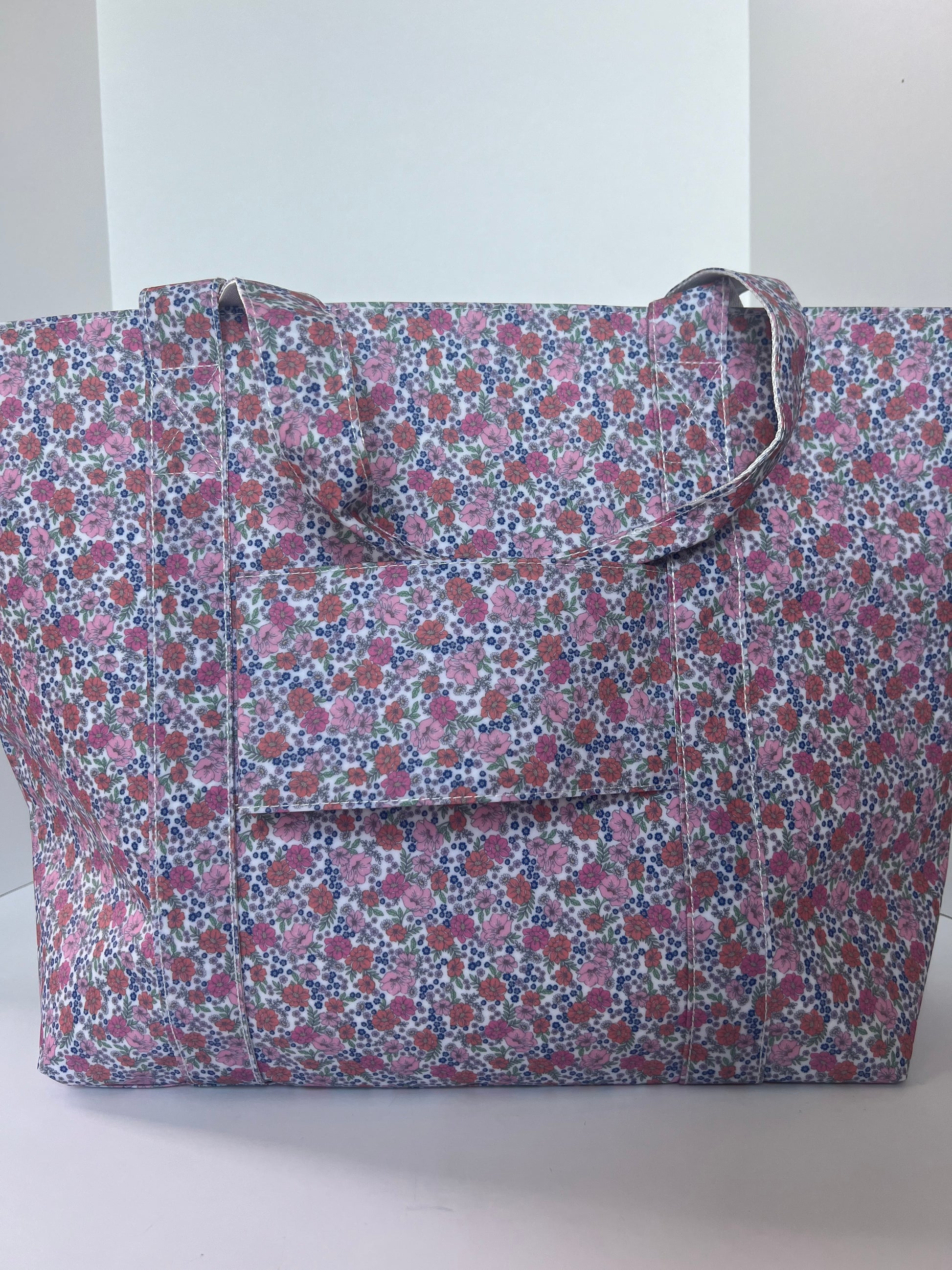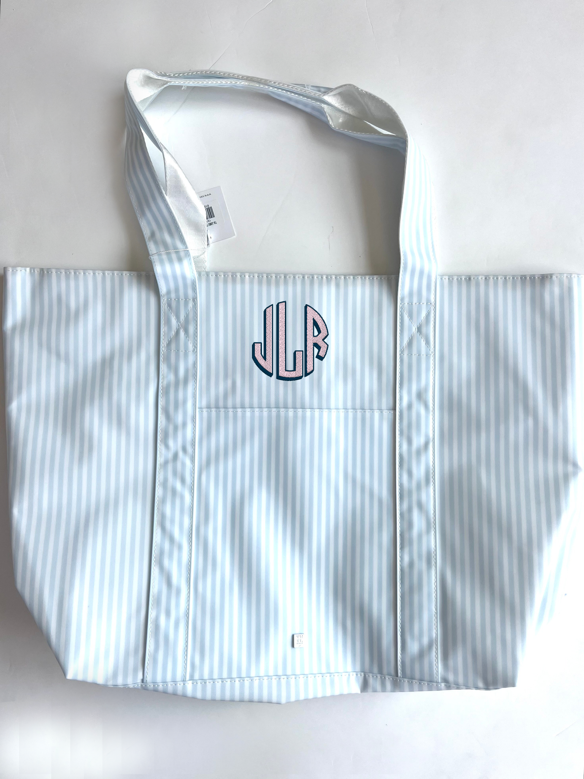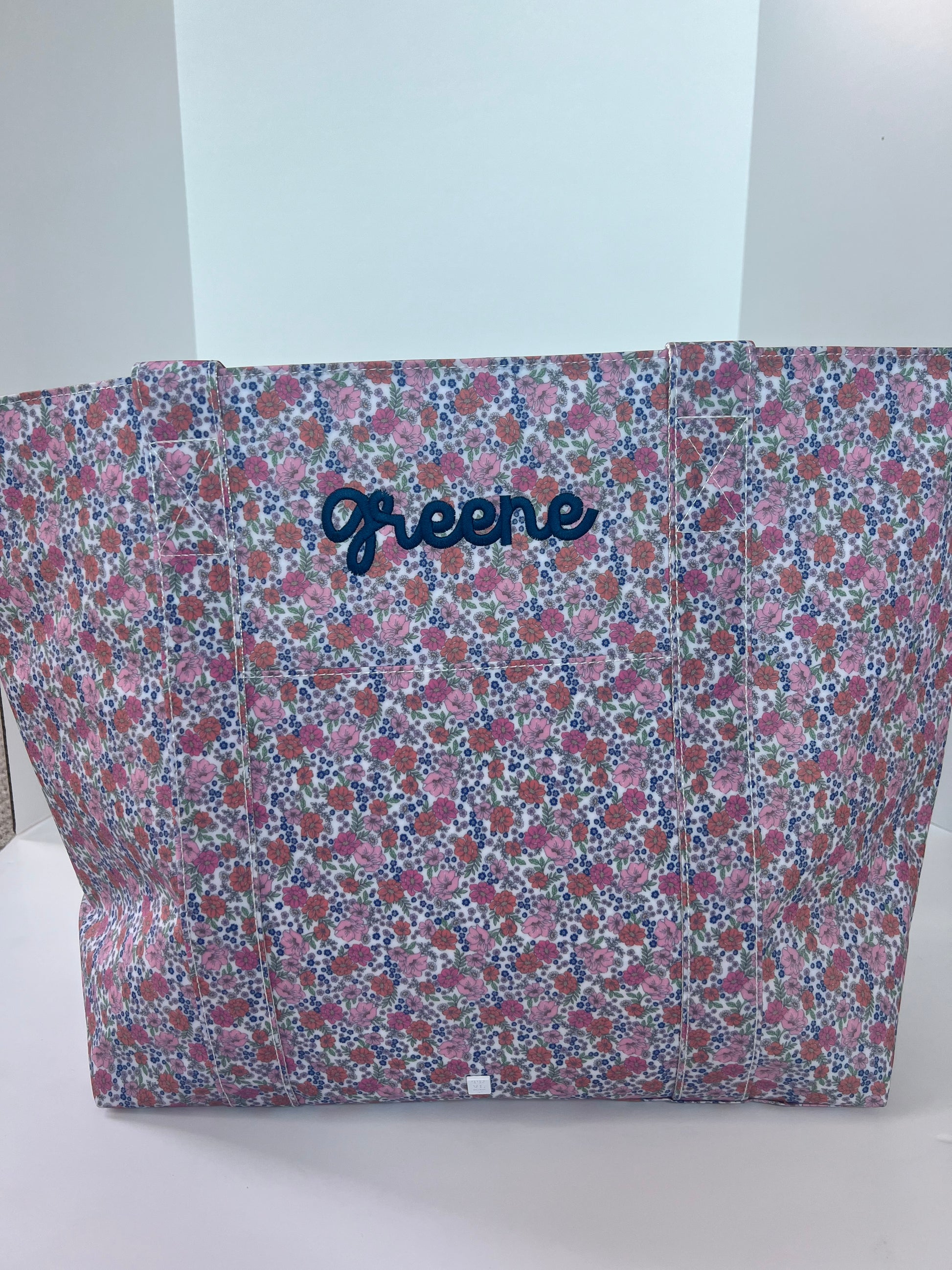 The JUMBO tote in the coated cotton is perfect for day to day, the beach, weekend getaway and all day use. Designed with double shoulder straps and front pockets. Interior lanyard strap. Also includes a trolley passthrough for easy travel!