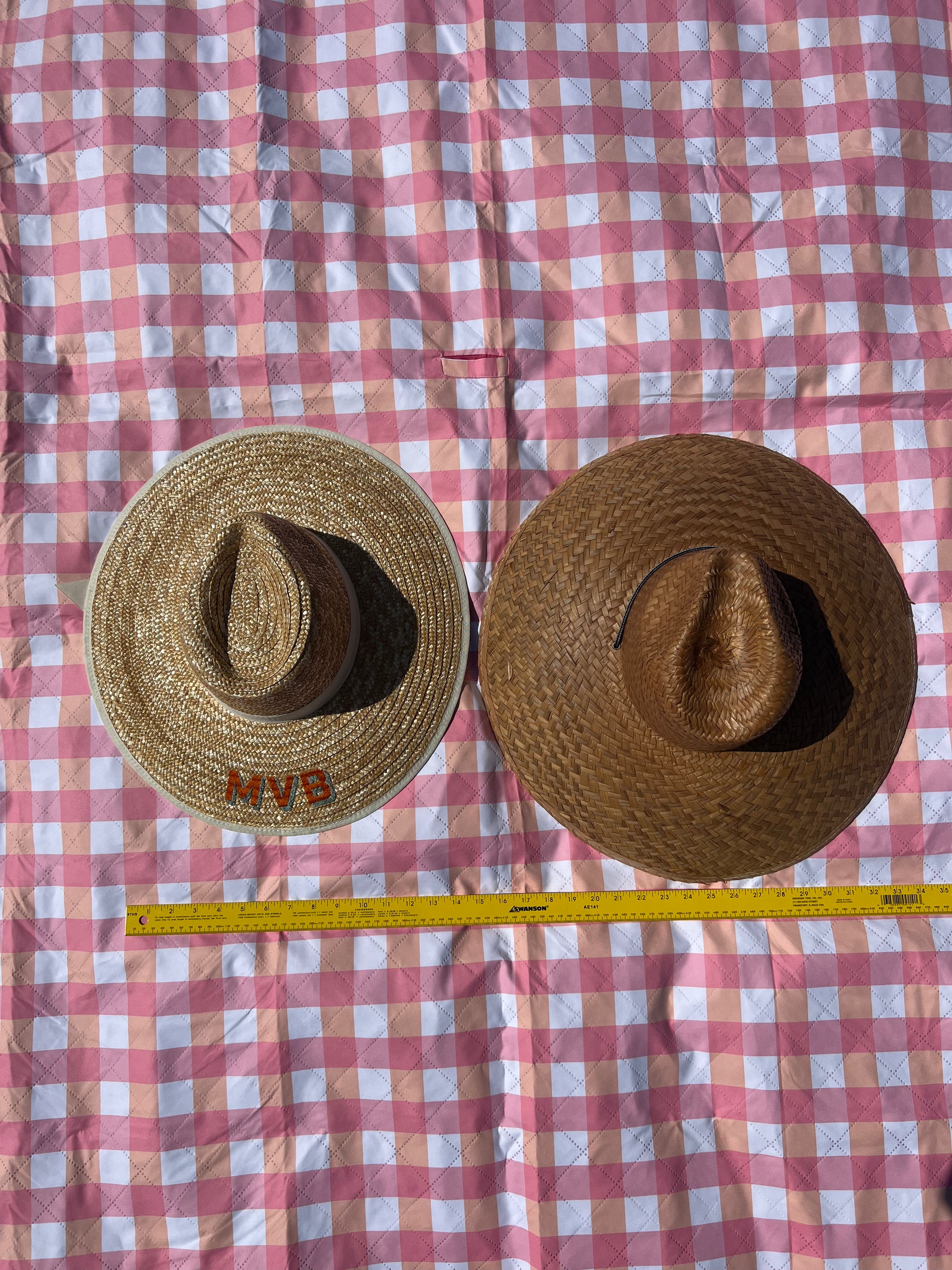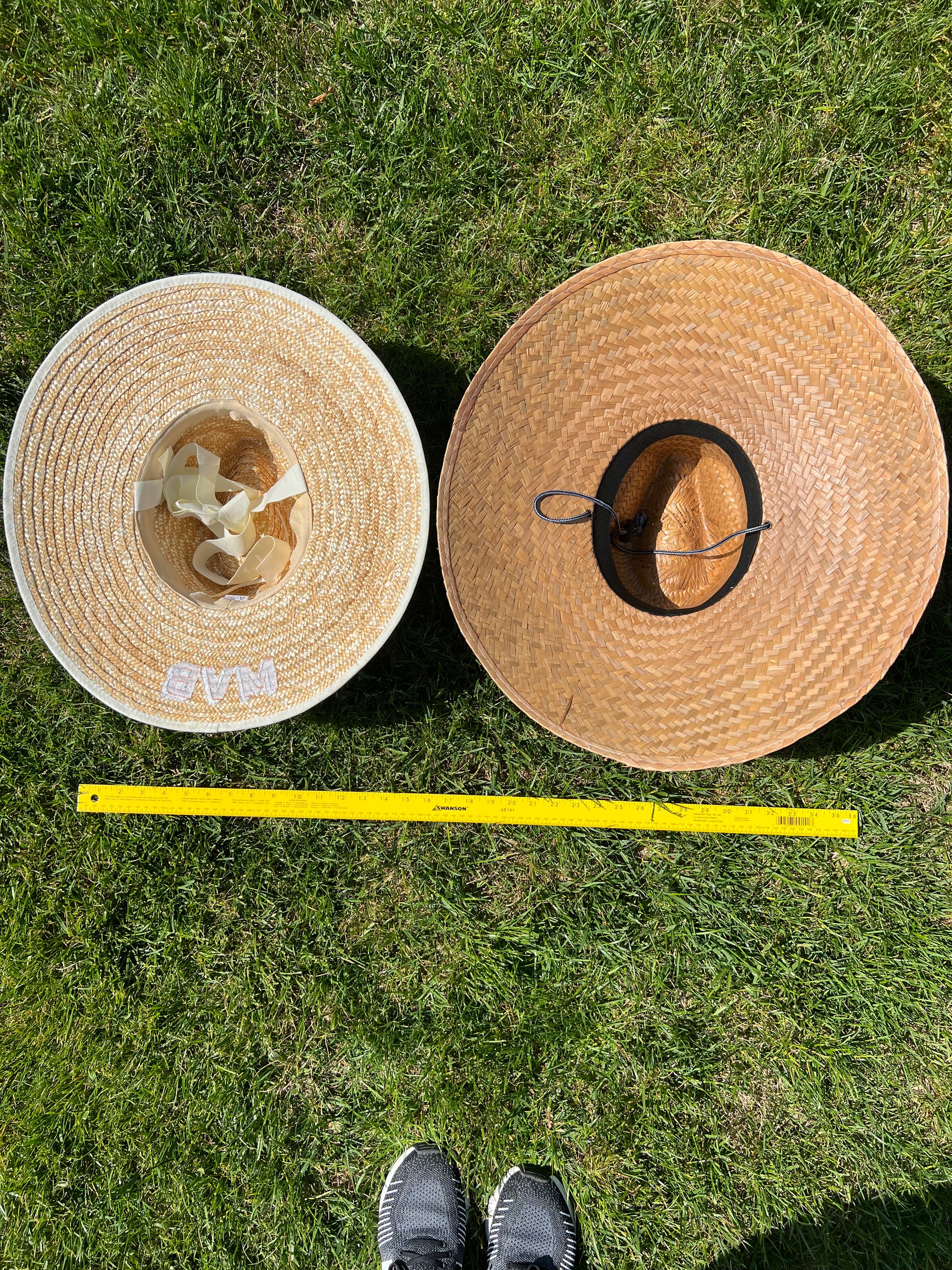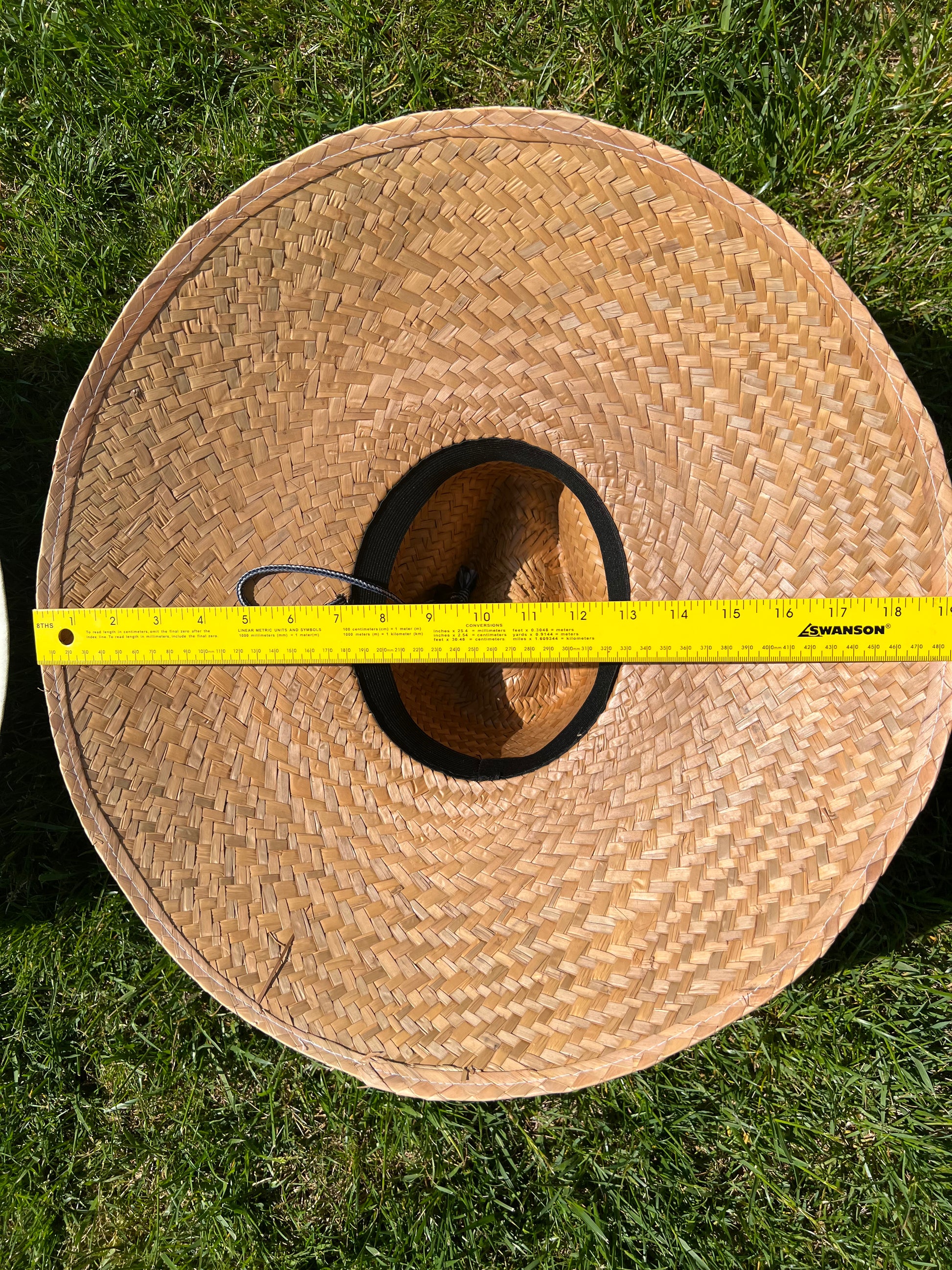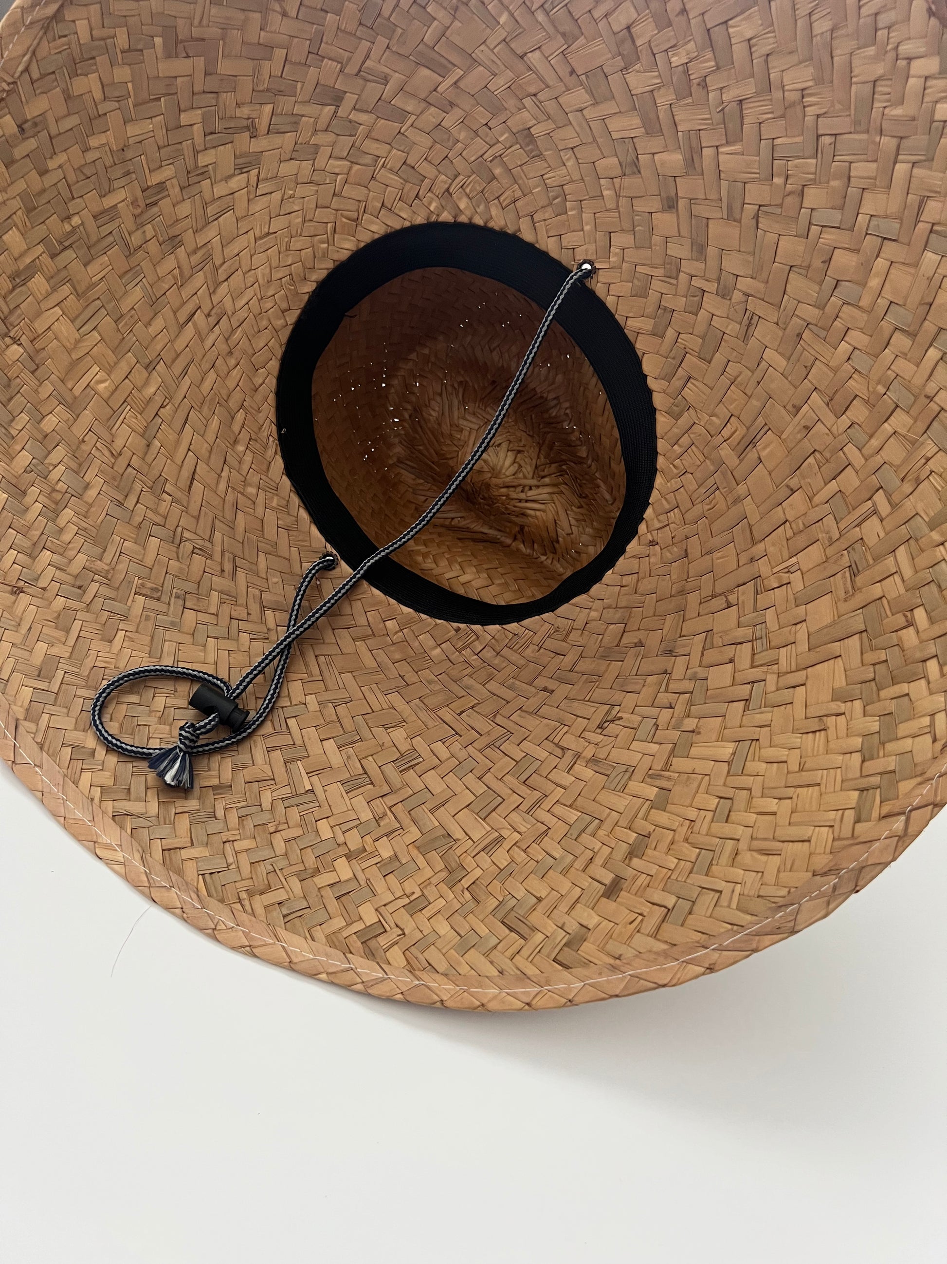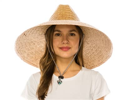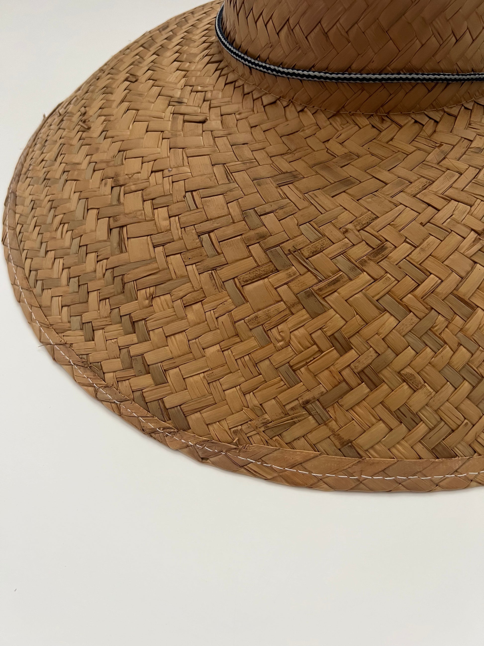 Oversized palm leaf lifeguard hat for maximum sun protection. Drawstring at the chin to help with those windy days.