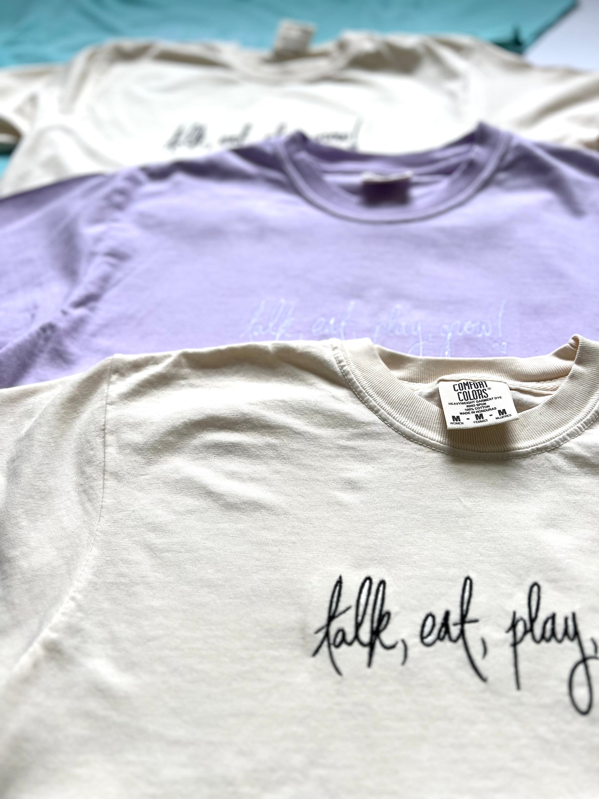 popular choice: dylan font on the collar with your team's colors and a saying.