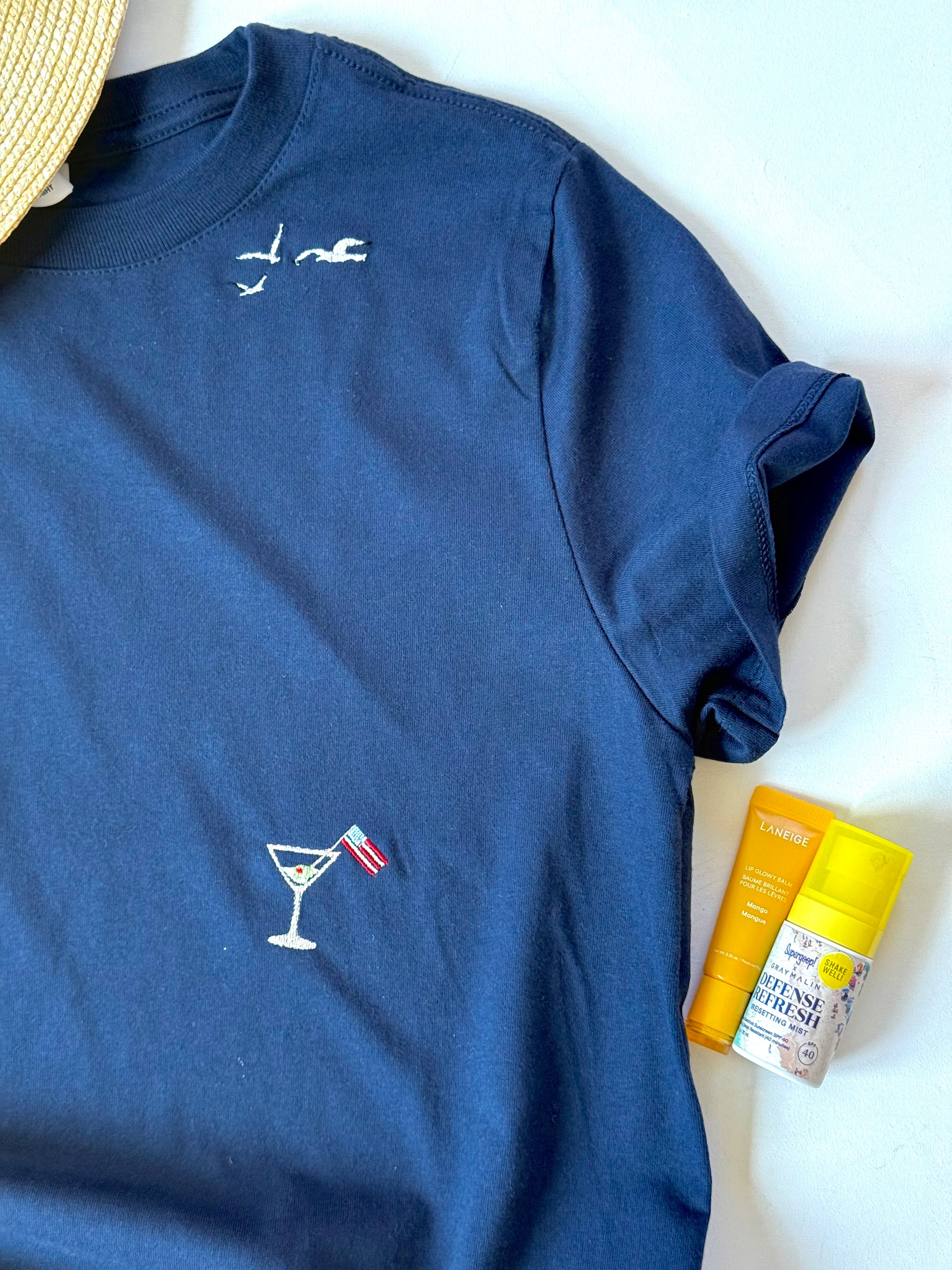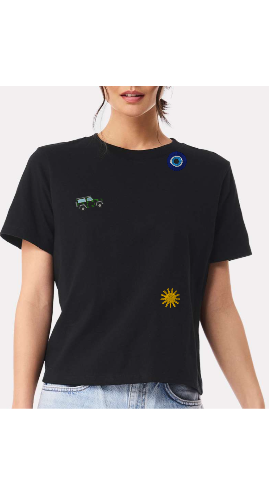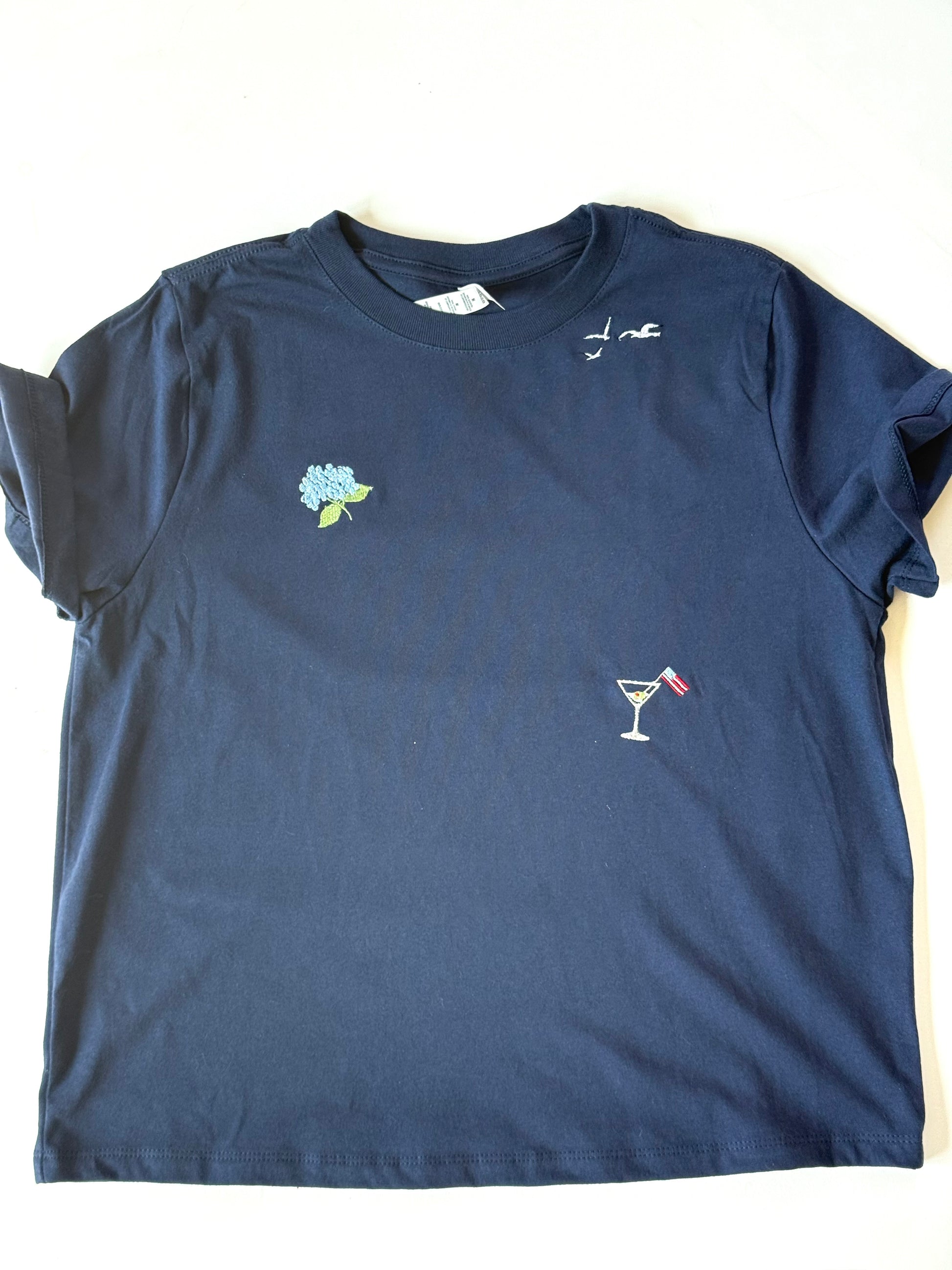 about the tee: Cut for a woman mid-length, slight-boxy fit, set-in sleeves, double stitched neck, and side seams. It is made from 100% airlume combed and ring spun cotton.