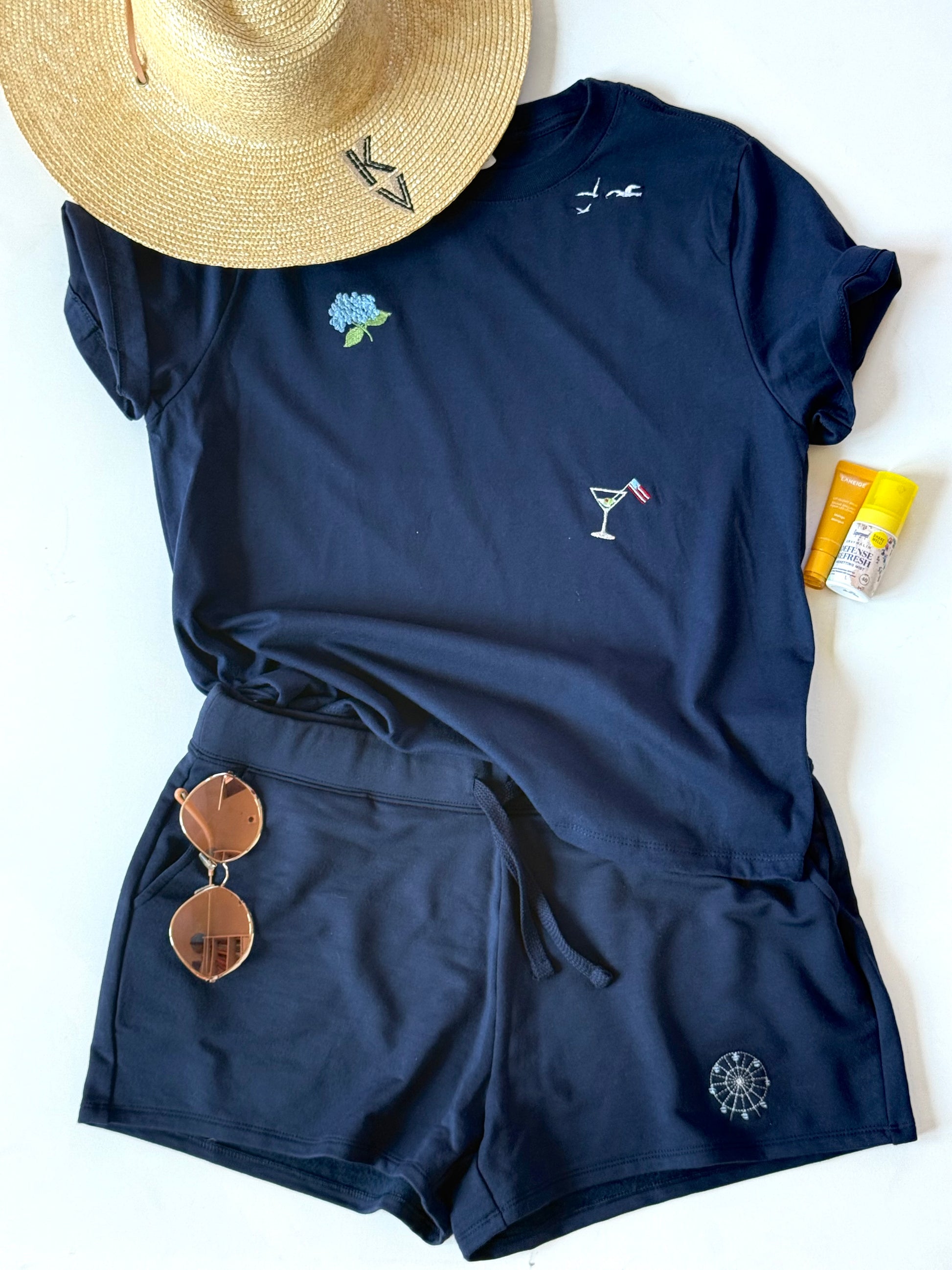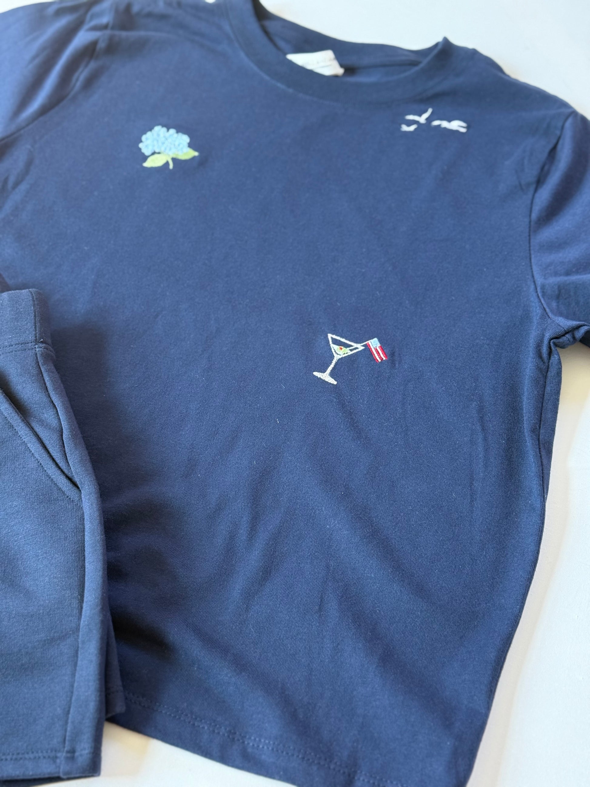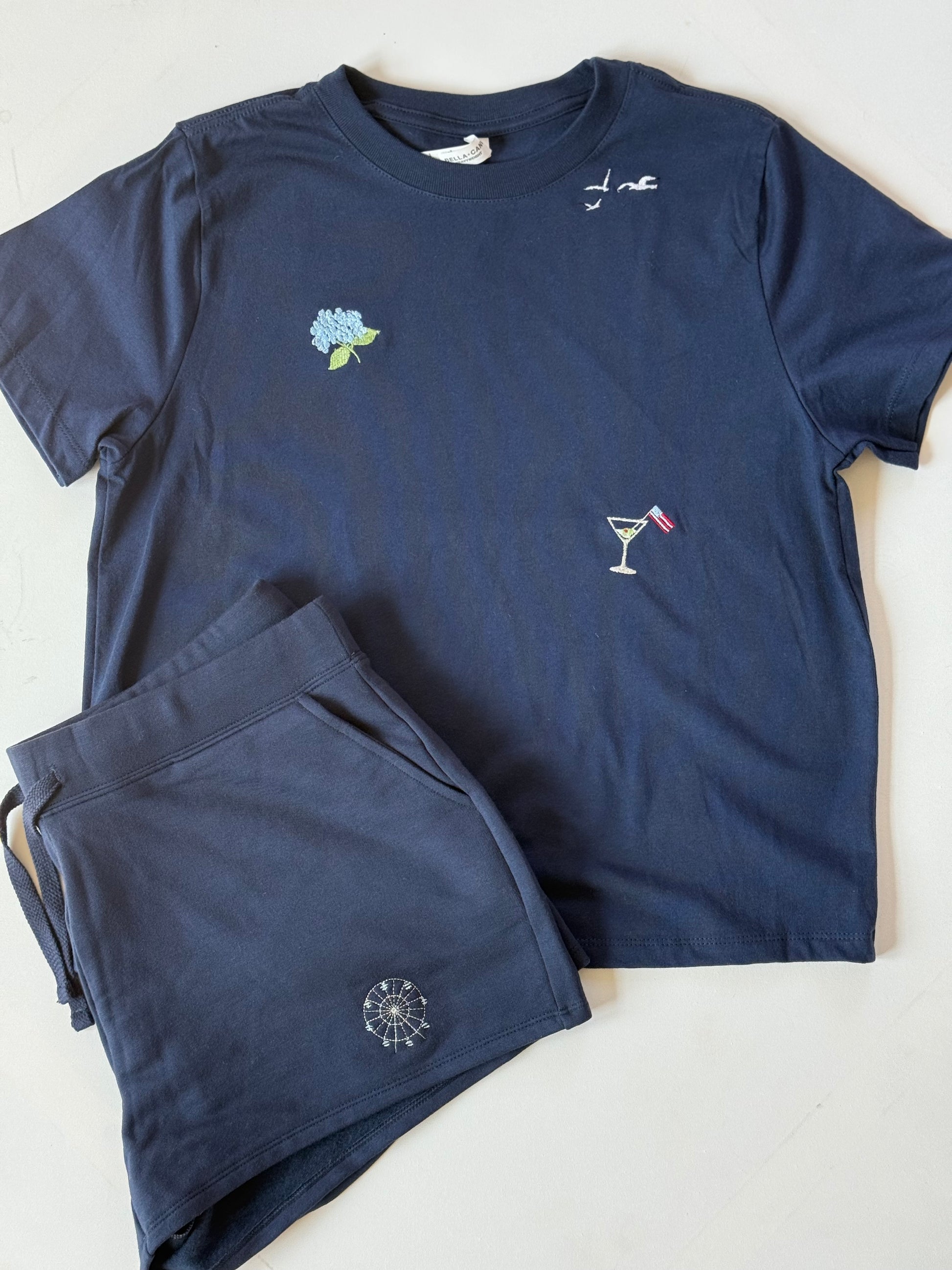 about the tee: Cut for a woman mid-length, slight-boxy fit, set-in sleeves, double stitched neck, and side seams. It is made from 100% airlume combed and ring spun cotton.