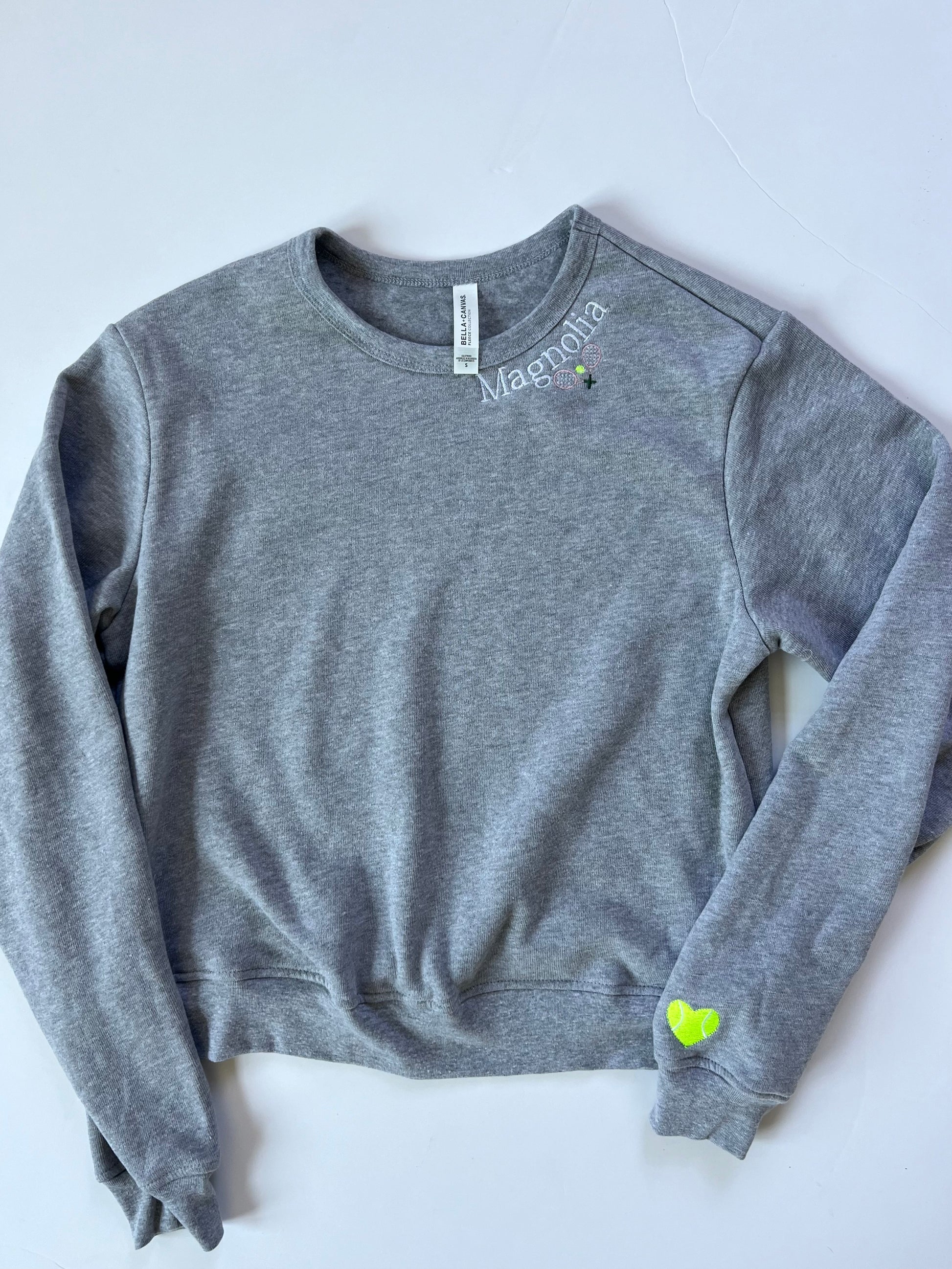 Everything you love from the OG "Adult Softest Crewneck Sweatshirt" but with a more feminine cut. A plush fleece interior fabric, that is somehow super lightweight. The perfect foundation to customize to your liking! Add as many motifs and words/sayings as you would like! Price includes 1 name or monogram. Oversized fit. Drop shoulder seams. Sueded fabric finish. ribbed cuffs and waistband.